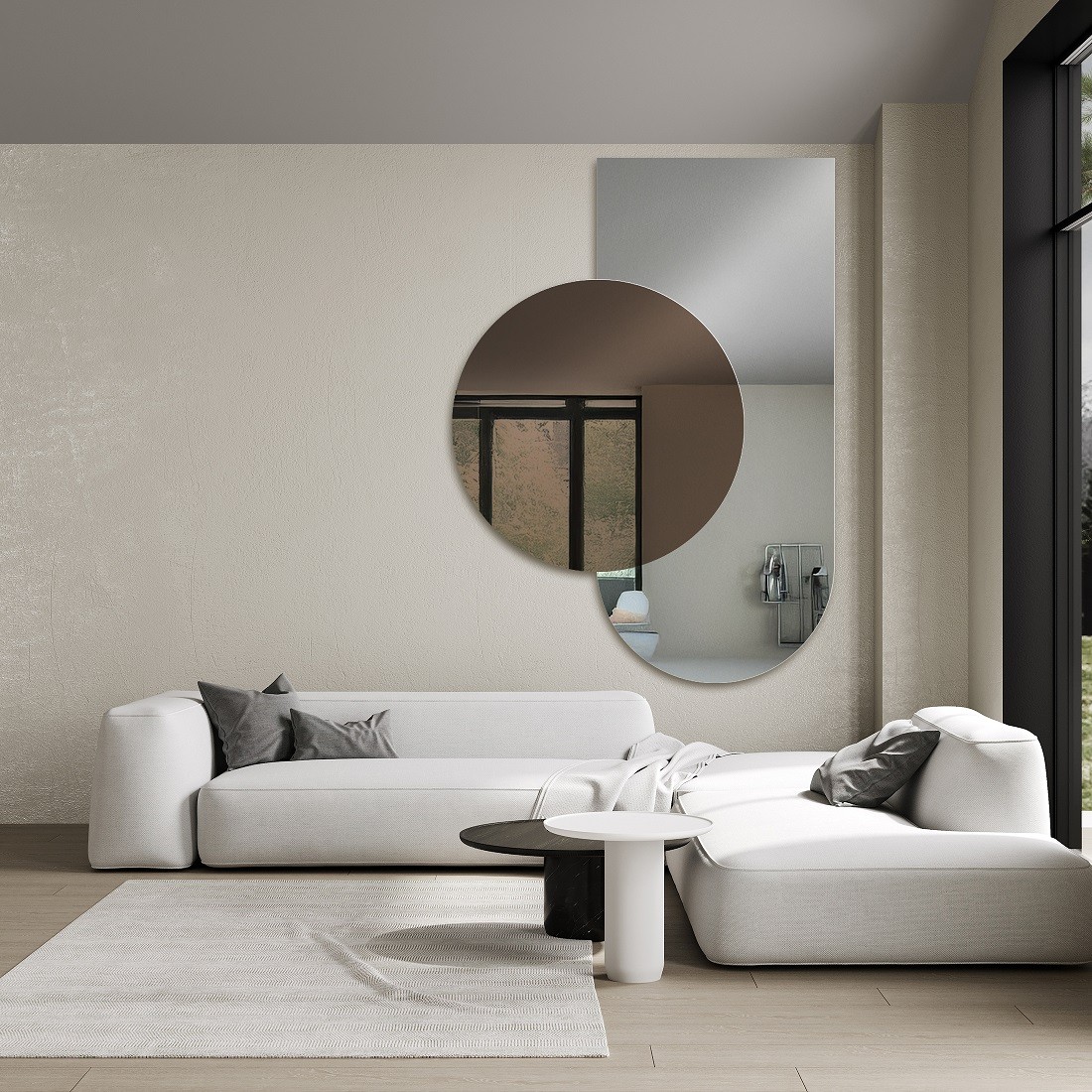 Osvedčia sa geometrické zrkadlá – obdĺžniky, štvorce, kruhy, ovály a polooválne portálové zrkadlá. Môžu to byť aj asymetrické či delené tvary, ako aj zrkadlá spájajúce dve tabule, tiež v rôznych farbách.