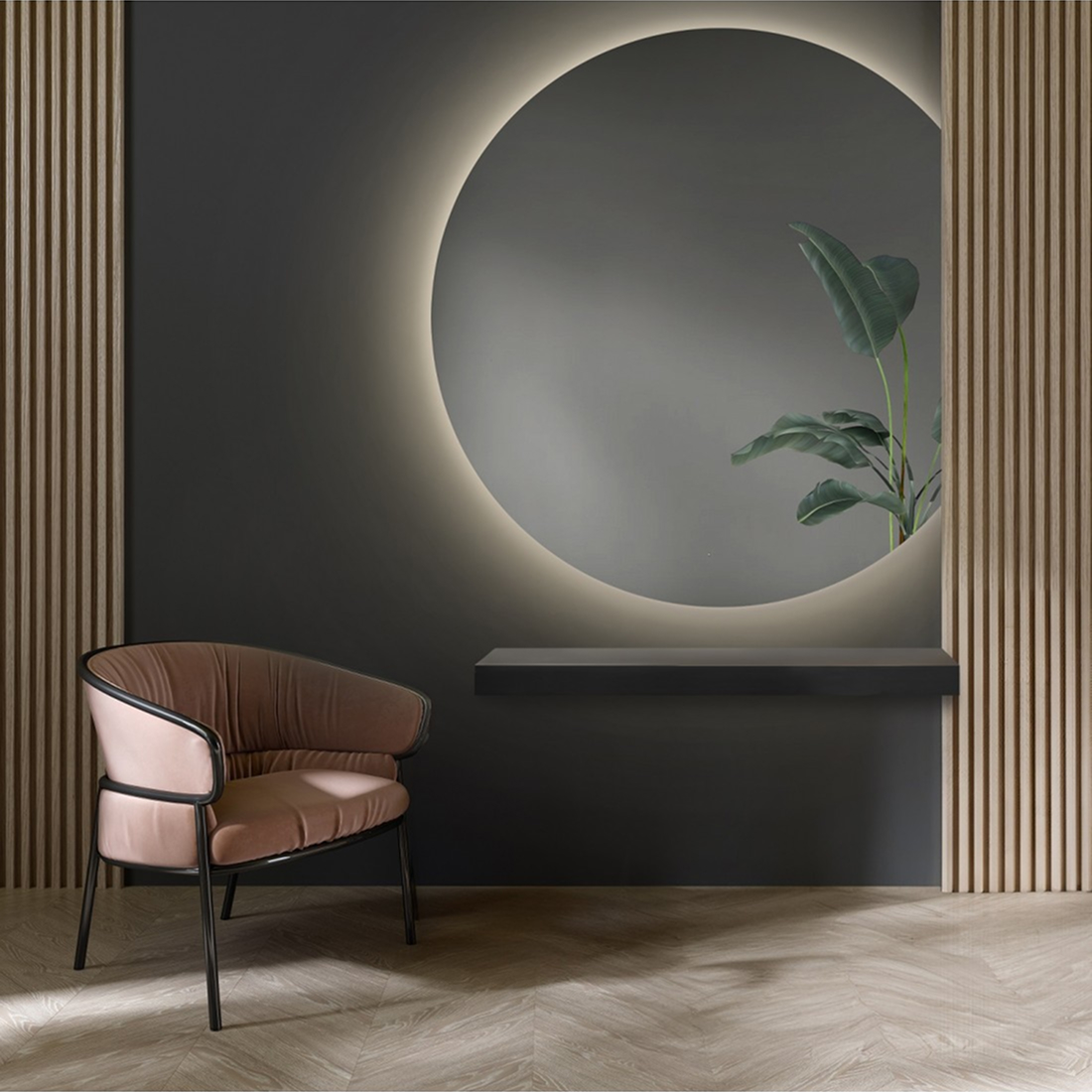 Prejdime k tvarom: keď stavíme na symetriu, je dobré vybrať zrkadlo s rovnými líniami. Ak sa v interiéri prelínajú rovné aj zaoblené línie, môže to byť organické alebo okrúhle zrkadlo. Najmä to druhé vytvorí kontrast, ale uzavretý v geometrii a zvýrazňujúci rôzne tvary a štruktúry. Je to jedno z najmodernejších a najobľúbenejších spojení. Spája modernosť s eleganciou a mäkké línie zrkadlovej plochy narúšajú ostrejšiu formu líšt. Ak má zrkadlo LED osvetlenie a bude namontované na lamelách, svetlo zároveň zvýrazní ich štruktúru. Celok sa vizuálne stane hlavným dekoratívnym prvkom steny a zrkadlo centrálnym bodom aranžmánu. Pritom možno využiť aj polkruhové modely, umiestňujúc ich vedľa alebo na lamely, najlepšie rovnou hranou k boku panelu. V tom druhom prípade však treba vedieť, ako namontovať zrkadlo na lamely.