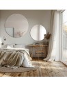 Na fotografii: Súprava okrúhlych zrkadiel SÚPRAVA KRUH – väčšia plocha so šírkou celej postele sa nachádza centrálne nad ňou, menšia je zavesená nižšie nad toaletným stolíkom umiestneným vedľa na pravej strane. [fot. ALFARAM]