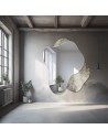 Nepravidelný tvar majú všetky organické zrkadlá s plynulými líniami, ktoré už v samotnom názve odkazujú na prírodu. Sú ňou inšpirované a napodobňujú jej tvary, ako sú mraky, kaluže, škvrny, kamenné útvary alebo listy rastlín. Spájajú sa s jednoduchosťou, autenticitou a pominuteľnosťou. Vďaka tomu sa dodatočne zapájajú do jedinečného charakteru, ako aj do tu tak ceneného trendu asymetrie, teda filozofie akceptácie nedokonalosti a krásy plynúcej z prírody. Príkladom toho je nepravidelné zrkadlo na zostarutom striebornom zrkadle – SPINEL, ktoré spája dve vlastnosti, a to organický tvar so starým povrchom. Ten druhý má pomerne dekoratívny charakter, ale skvele odkazuje na prírodu nielen organickým tvarom. Vyzerá ako akýsi obraz s rastlinným motívom, akoby rozmazanými korunami stromov. Farba tohto motívu prechádza do slnečnej zelene, ktorú zdôrazňuje silnejšia zeleň živých rastlín. Sú to teplejšie akcenty v tomto pomerne monochromatickom priestore, ktorého strohá jednoduchosť a asymetria sú zdôraznené betónovým vzorom na spodnej časti steny, ako aj stropom s odkrytými prírodnými trámami.