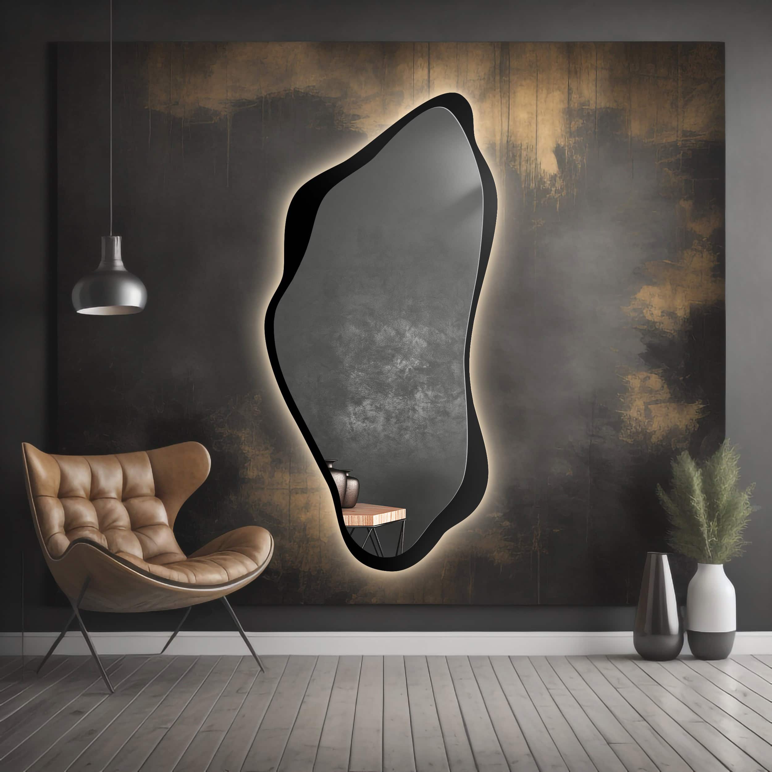 Zrkadlo nepravidelného tvaru s MDF rámom a podsvietením - PIENA V LED RÁME