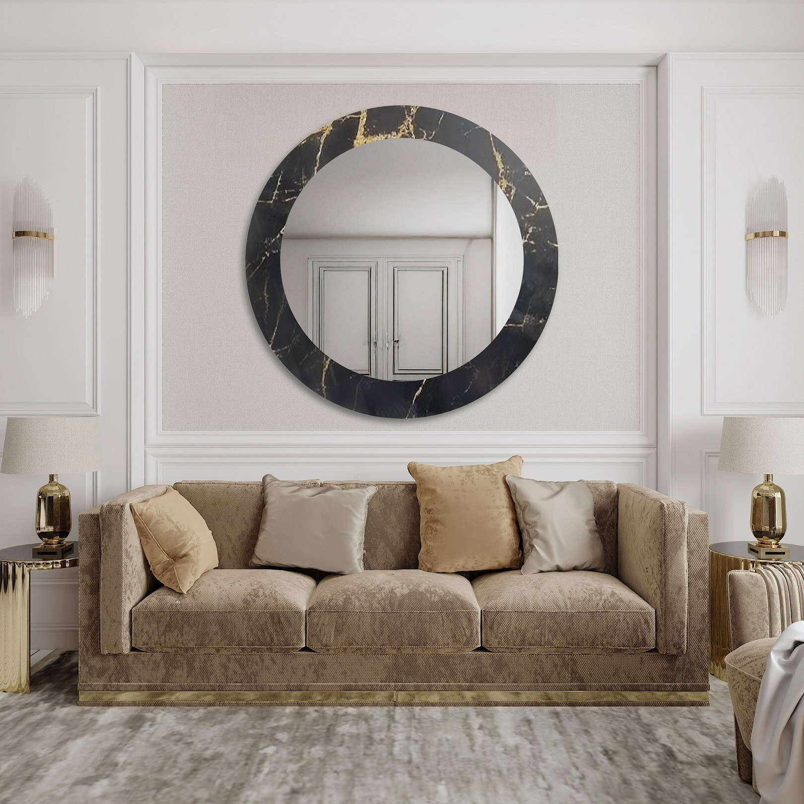 Okrúhle zrkadlo na čierno-zlatom mramore – MARBLE NOELLE