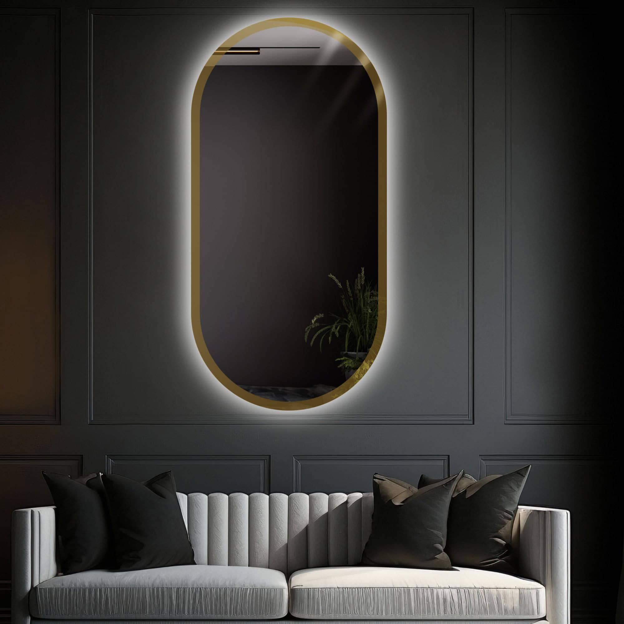 Oválne zrkadlo v zlatom lesklom ráme s podsvietením - BONITA LED