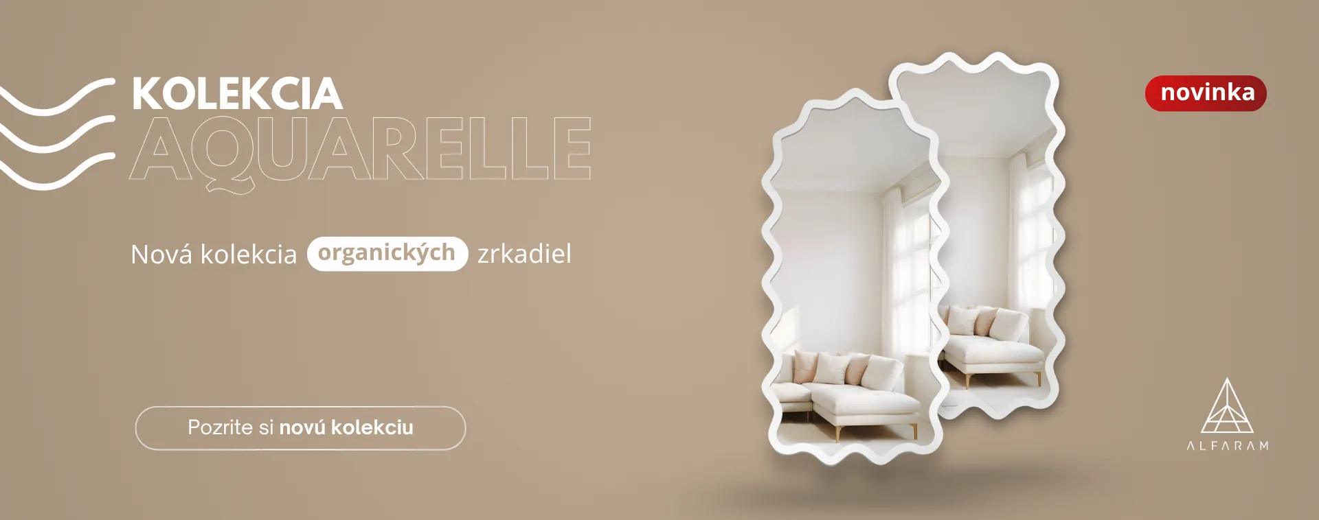 Kolekcia Aquarelle je pozvánkou do sveta, kde zrkadlá nadobúdajú organické tvary inšpirované pohybom vody a dynamikou prírody. Ich zvlnené rámy pôsobia dojmom, akoby boli živou formou – jemnou, zmyselnou a v neustálom pohybe.
