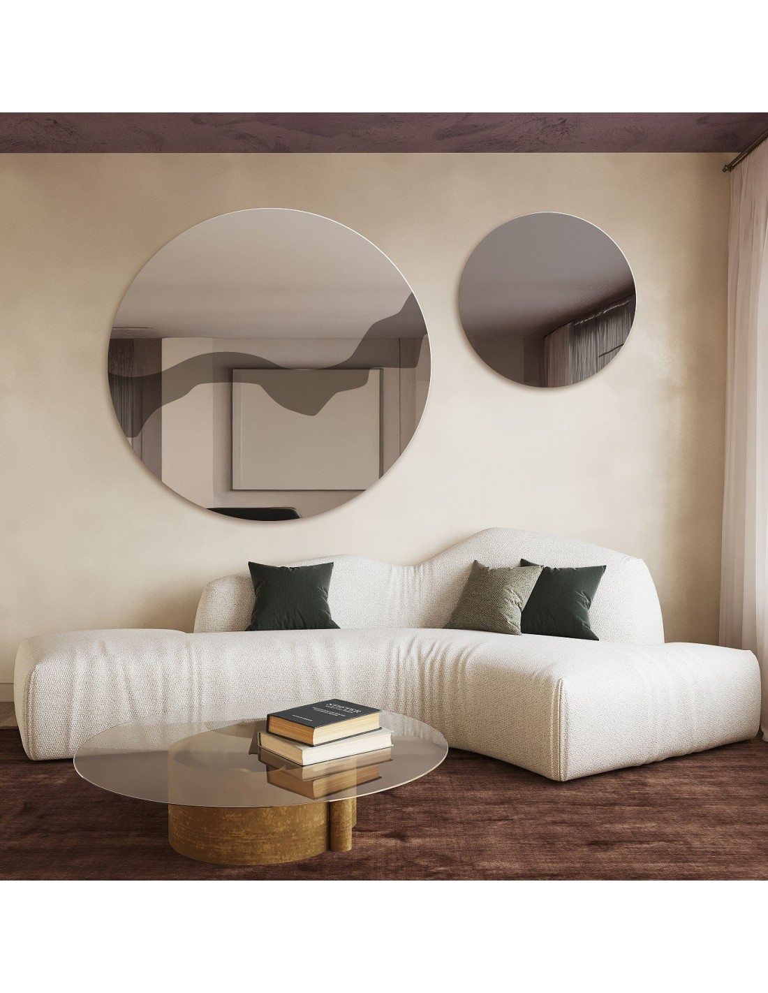 Okrúhle zrkadlá na hnedej zrkadlovej tabuli – MOCHA NOUGAT