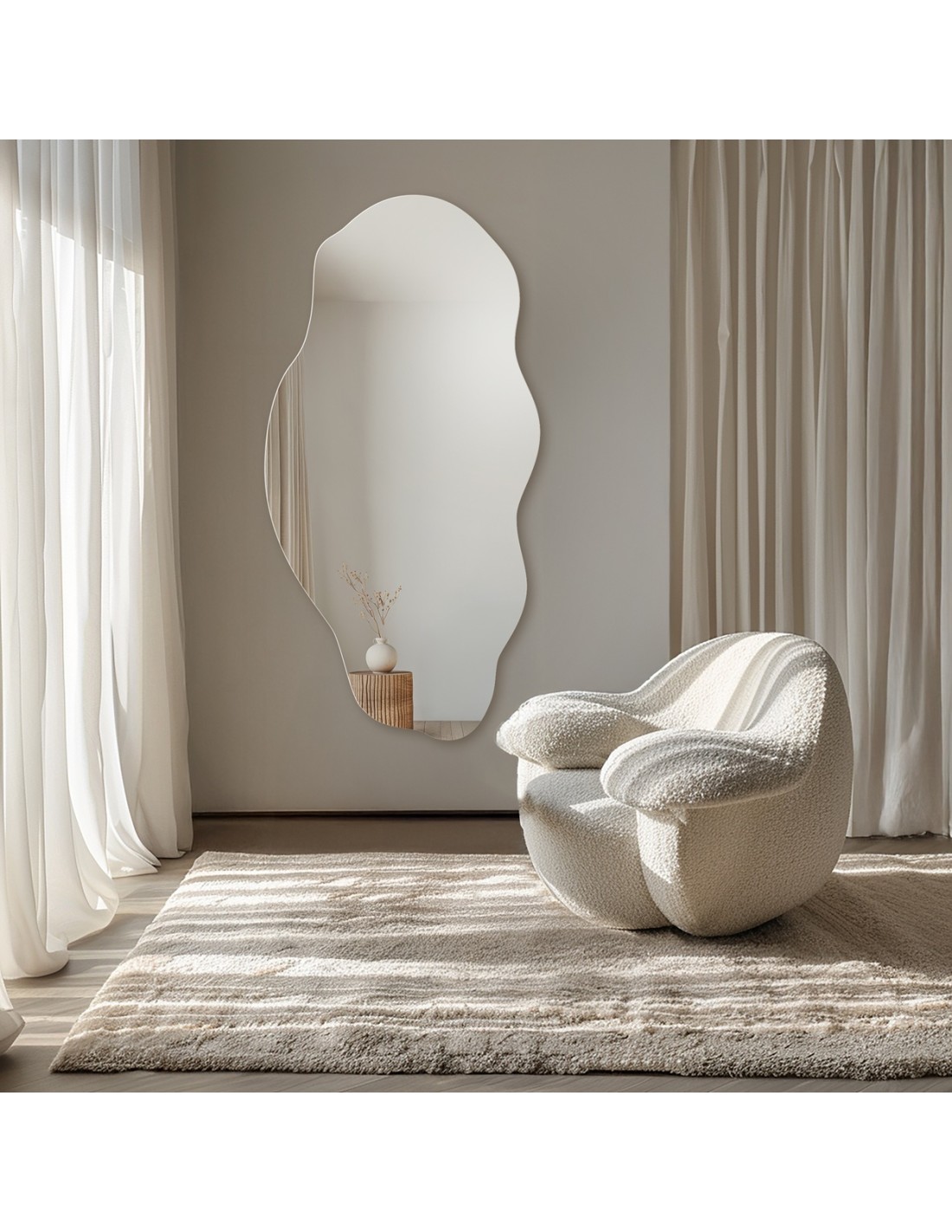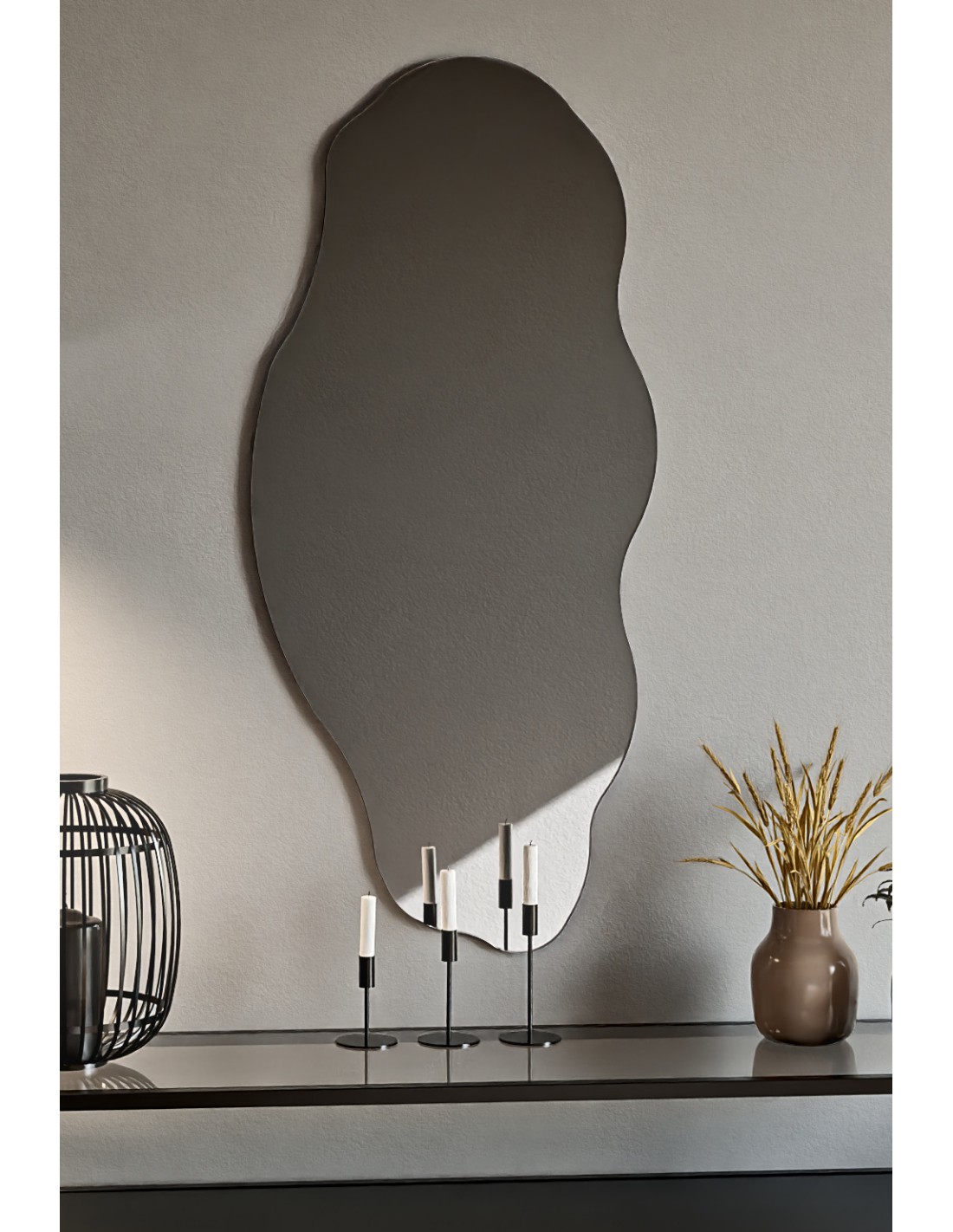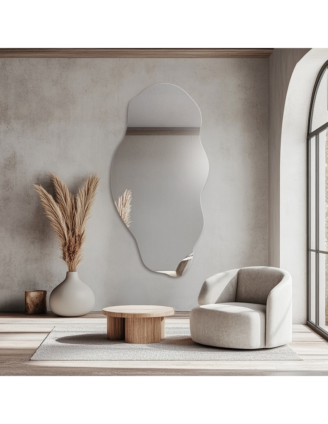 Organické zrkadlo s nepravidelným tvarom a brúsenými okrajmi.