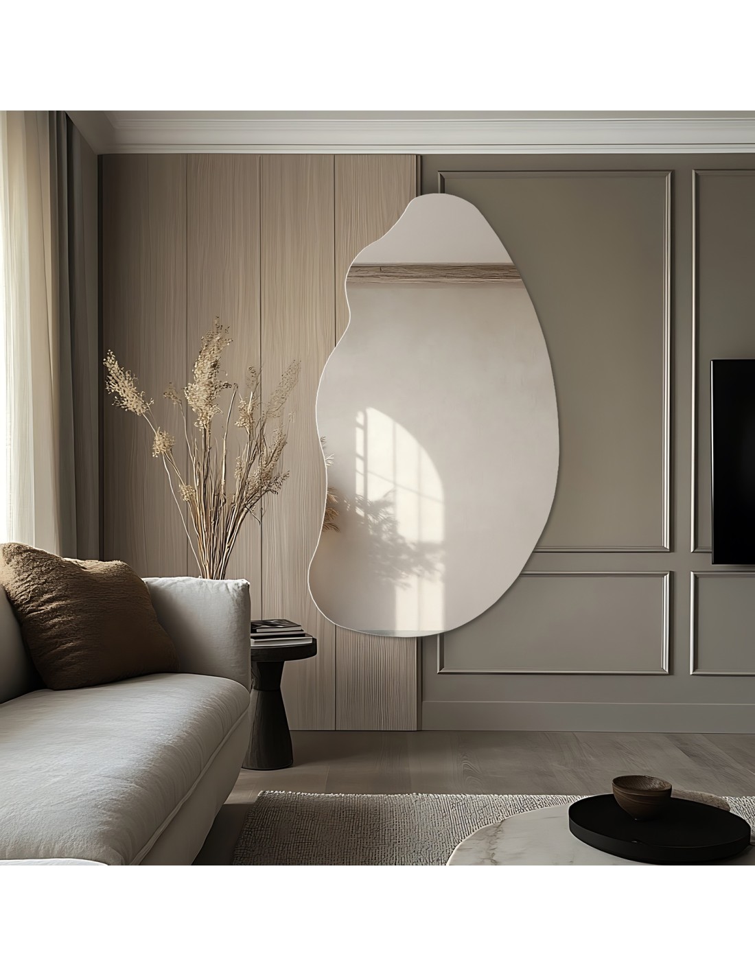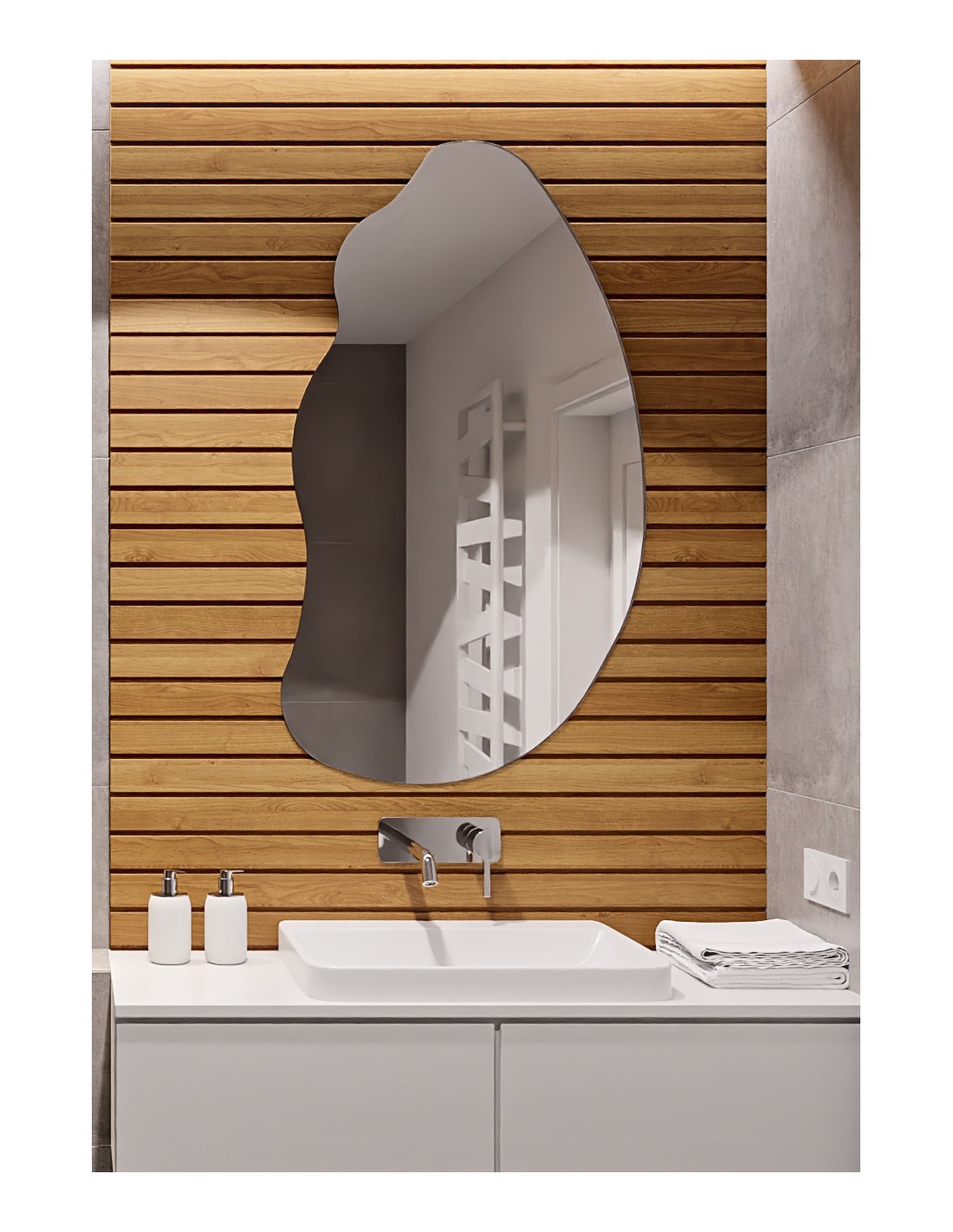 Organické zrkadlo s nepravidelným tvarom a brúsenými okrajmi.