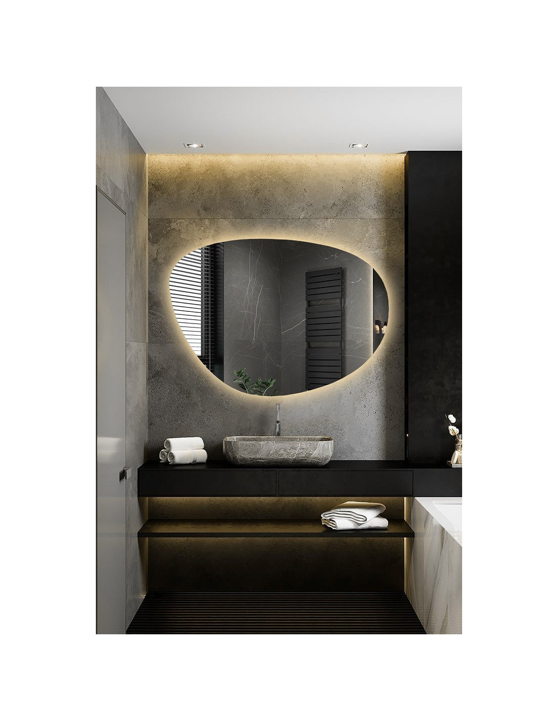 Protiparná rohož má nezávislý vypínač, ktorý umožňuje aktiváciu rohože kedykoľvek, bez ohľadu na osvetlenie zrkadla. Vykurovací prvok je umiestnený v strednej časti zrkadla, čím účinne eliminuje výpary a zabezpečuje čistý odraz. Z technických dôvodov nie je možné rohož nainštalovať na celú plochu zrkadla.