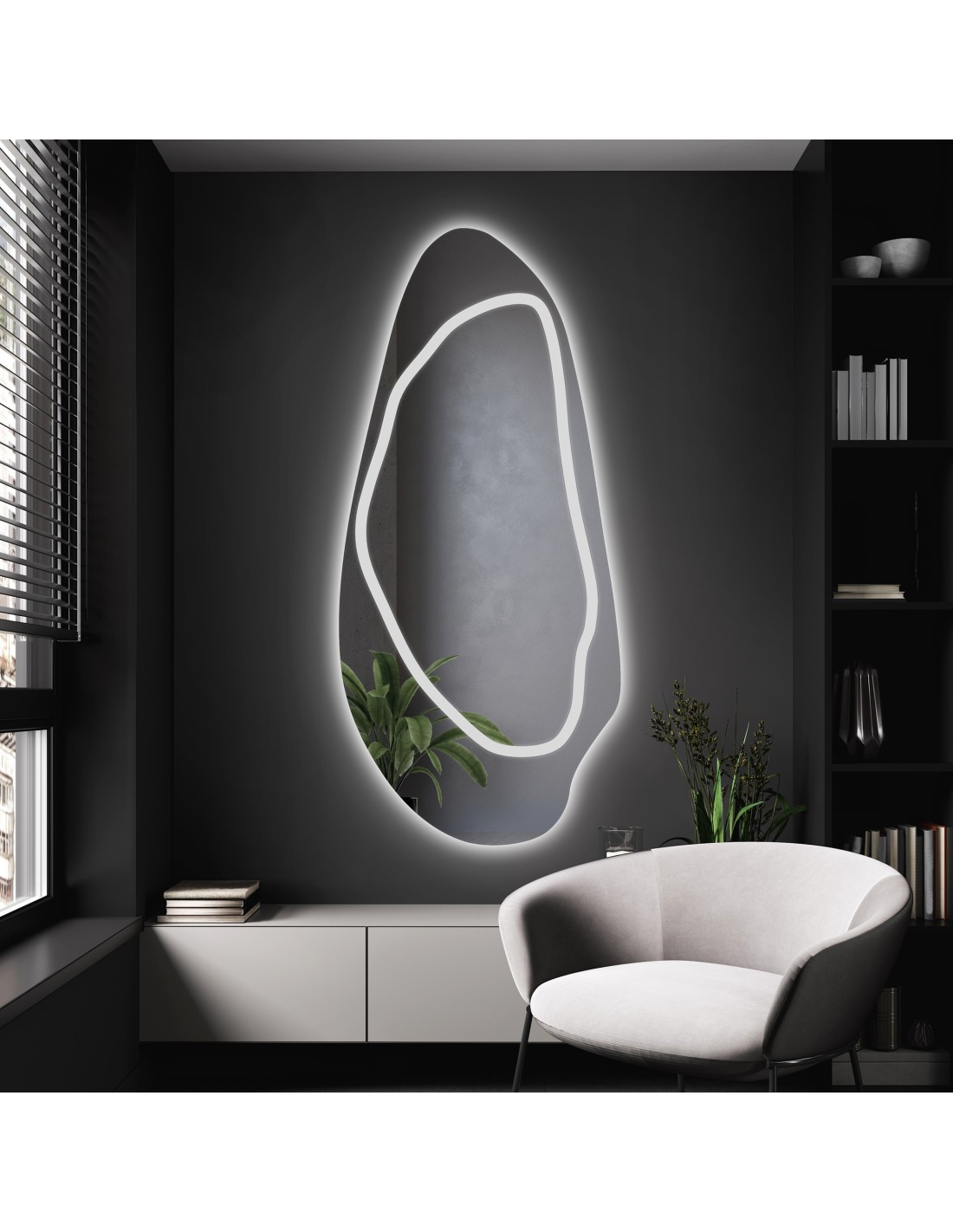 Premium LED - Svetlo svieti len na osobu stojacu pred zrkadlom - Zadný kryt - farba: ČIERNY MAT (80,00 €)