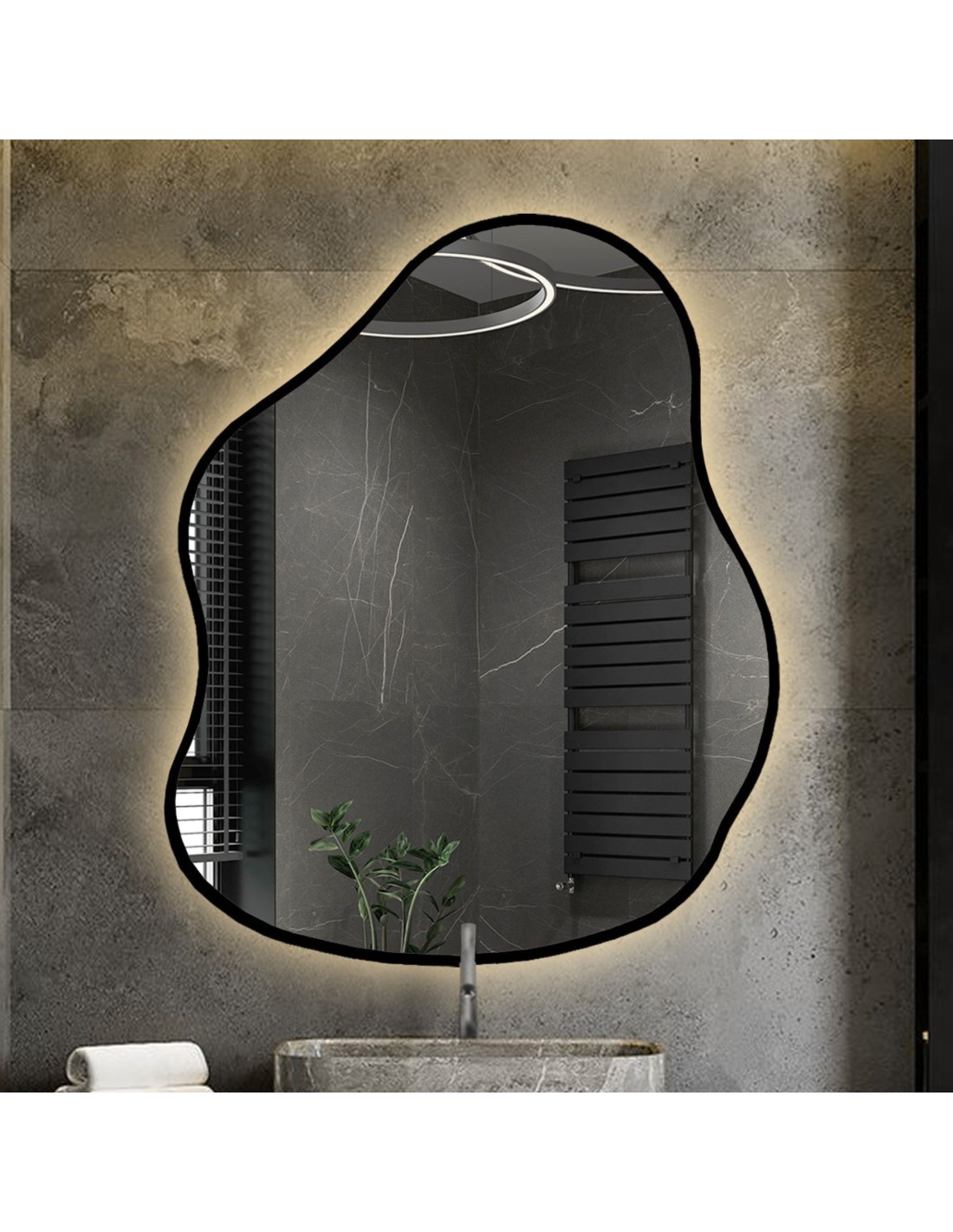 Zrkadlo s organickým tvarom v ráme so svetlom - STONE V RÁME LED
