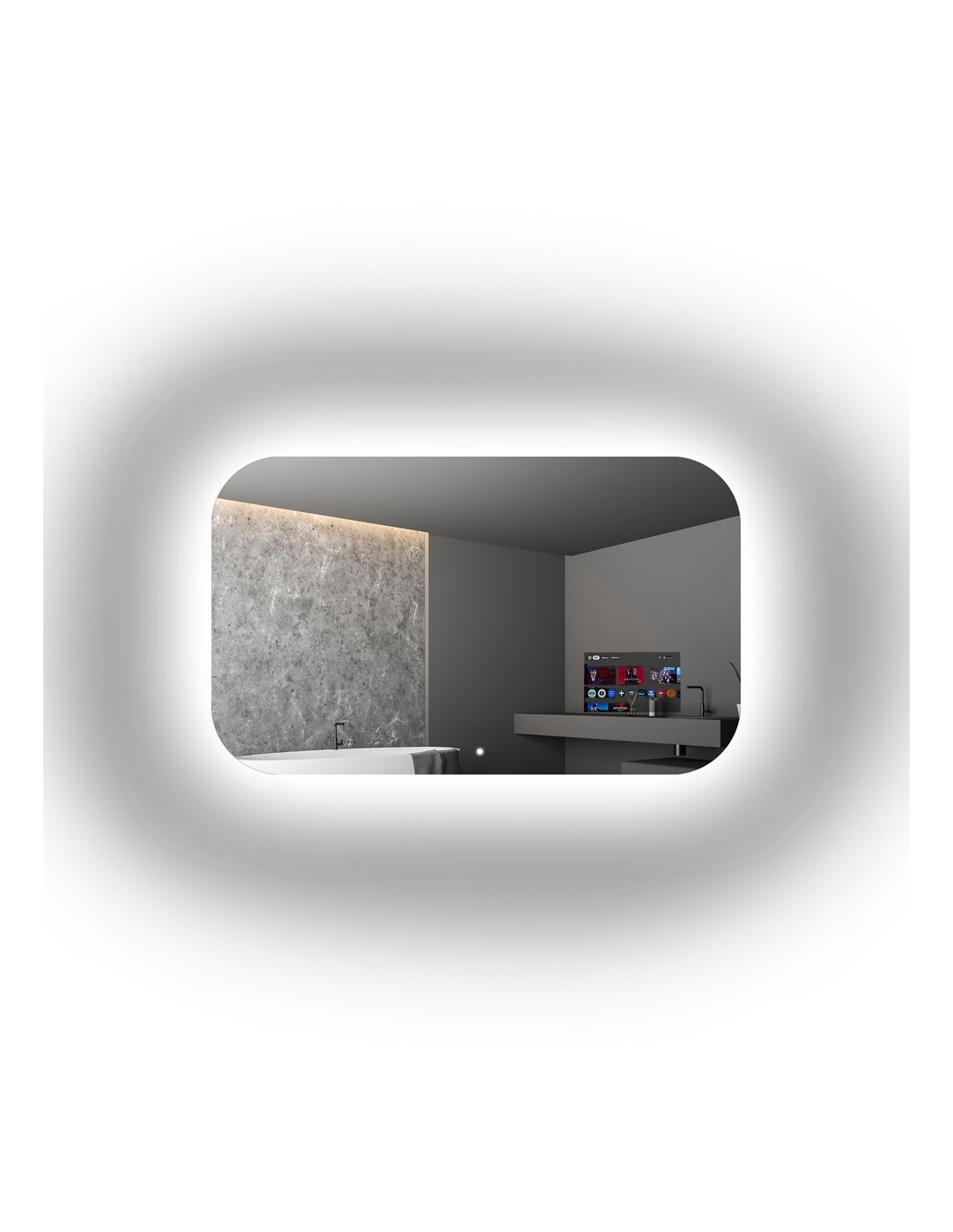 Osvetlenie LED sa zapne, keď sa dotknete povrchu zrkadla v spínacom bode. Spínač je trvalo osvetlený - bez ohľadu na osvetlenie zrkadla. Vďaka osvetleniu spínača ho možno ľahko nájsť aj v tme.