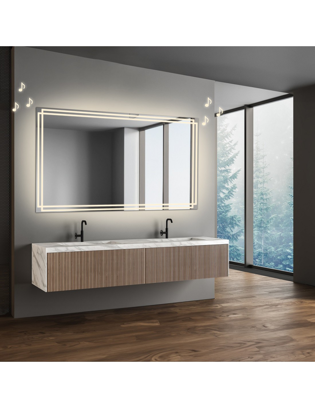 Reproduktor Bluetooth (pripojenie 230 V) - Tento reproduktor ukrytý za povrchom zrkadla je ideálnym riešením pre milovníkov hudby. Svoje obľúbené skladby môžete počúvať počas rannej alebo večernej rutiny, ako aj počas relaxačného kúpeľa. Vďaka technológii Bluetooth možno reproduktor jednoducho spárovať s mobilným telefónom alebo iným zariadením podporujúcim technológiu Bluetooth a streamovať hudbu alebo iný zvukový obsah. Napriek tomu, že je reproduktor neviditeľný, ponúka vysokokvalitný zvuk pre skvelý hudobný zážitok.