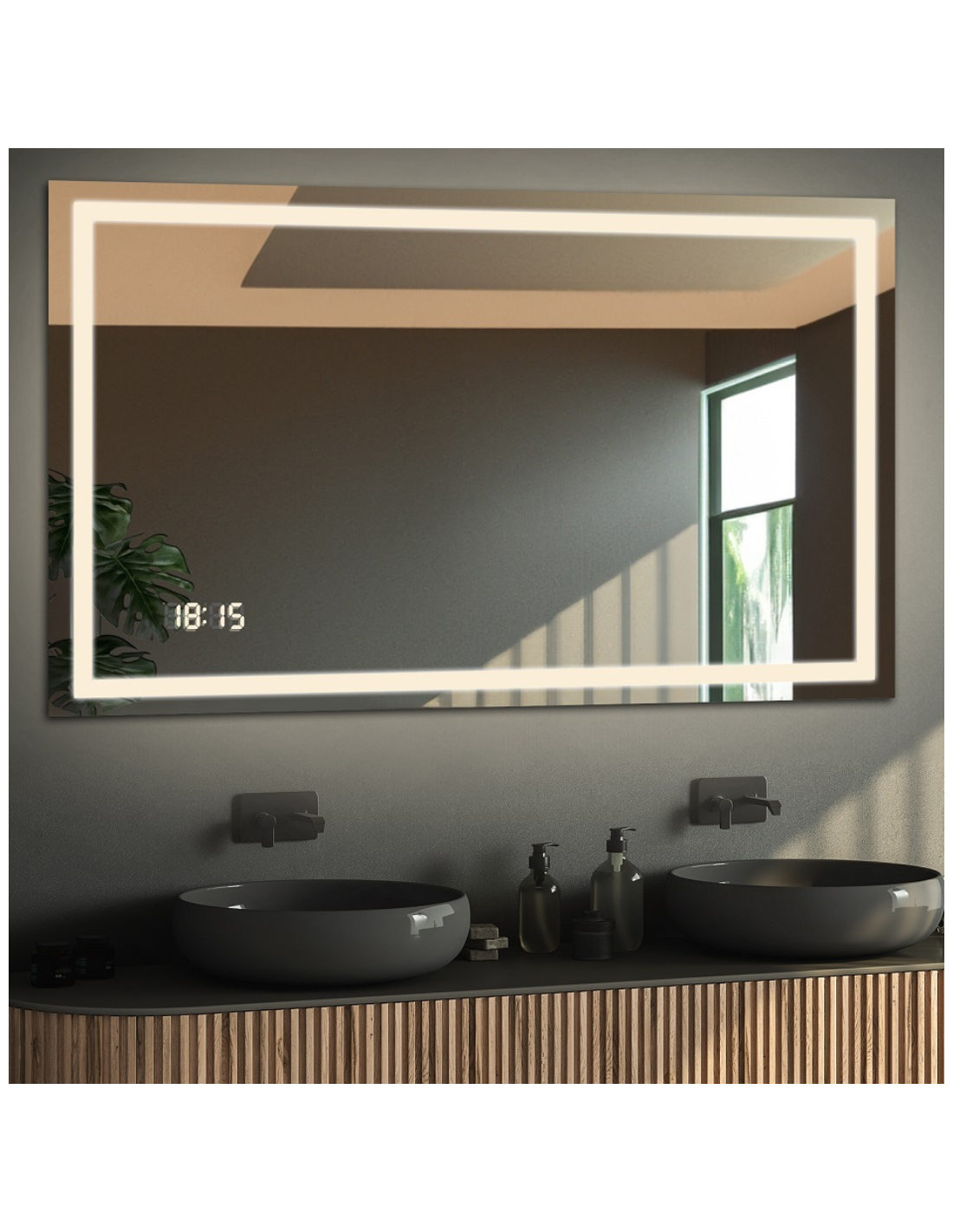 Obdĺžnikové kúpeľňové zrkadlo s digitálnymi hodinami - EMI LED PREMIUM