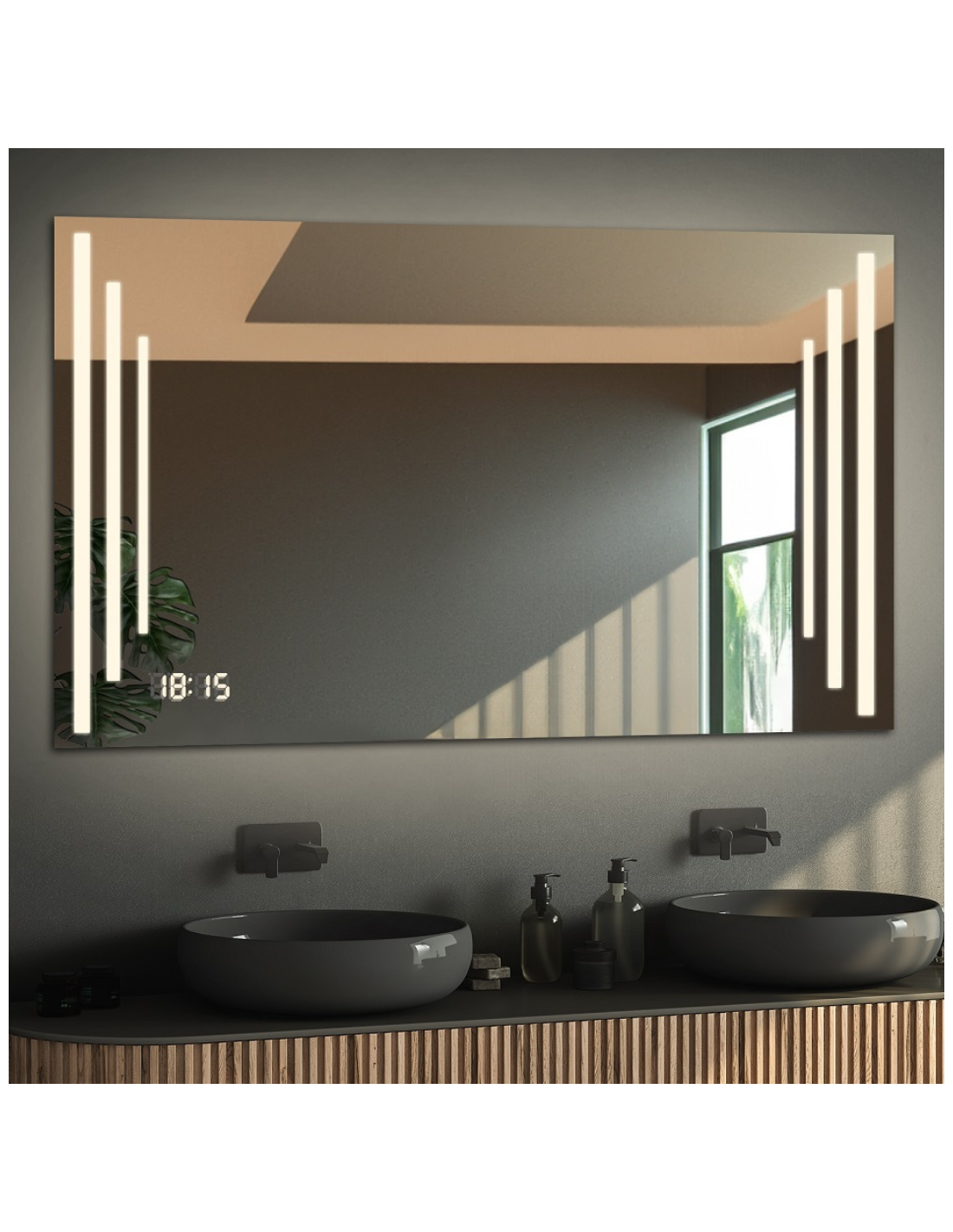 Obdĺžnikové kúpeľňové zrkadlo s digitálnymi hodinami - ALIS LED PREMIUM