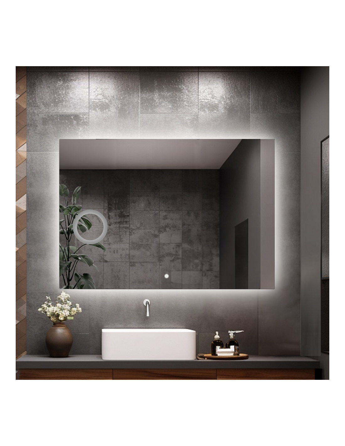 Dotykový spínač - Dotykový spínač je inovatívne zariadenie, ktoré umožňuje ovládanie osvetlenia zrkadla dotykom. Modul je integrovaný do povrchu zrkadla, čo dodáva celkovému vzhľadu eleganciu a modernosť. Vďaka osvetleniu spínača ho možno ľahko nájsť aj v tme.