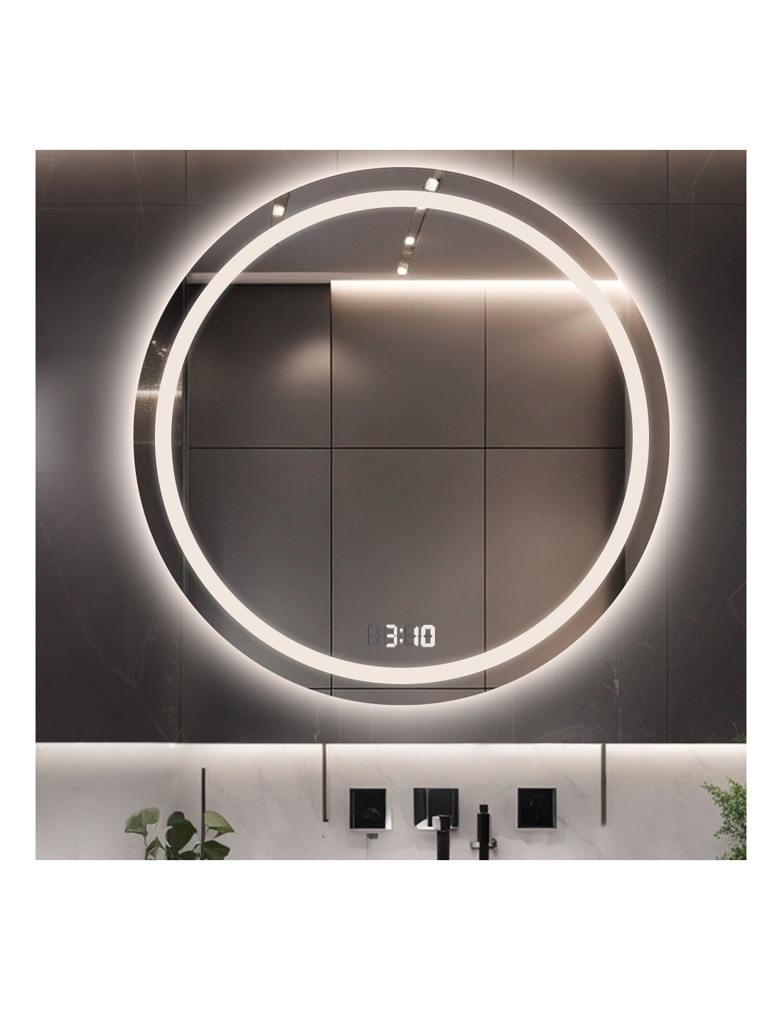 Kúpeľňové okrúhle zrkadlo s digitálnym hodinami - MAIA LED PREMIUM