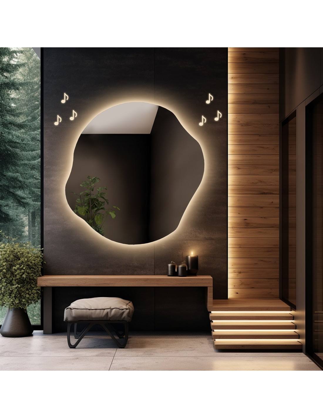 Kúpeľňové zrkadlo nepravidelného tvaru s reproduktorom bluetooth - CYRKON LED PREMIUM