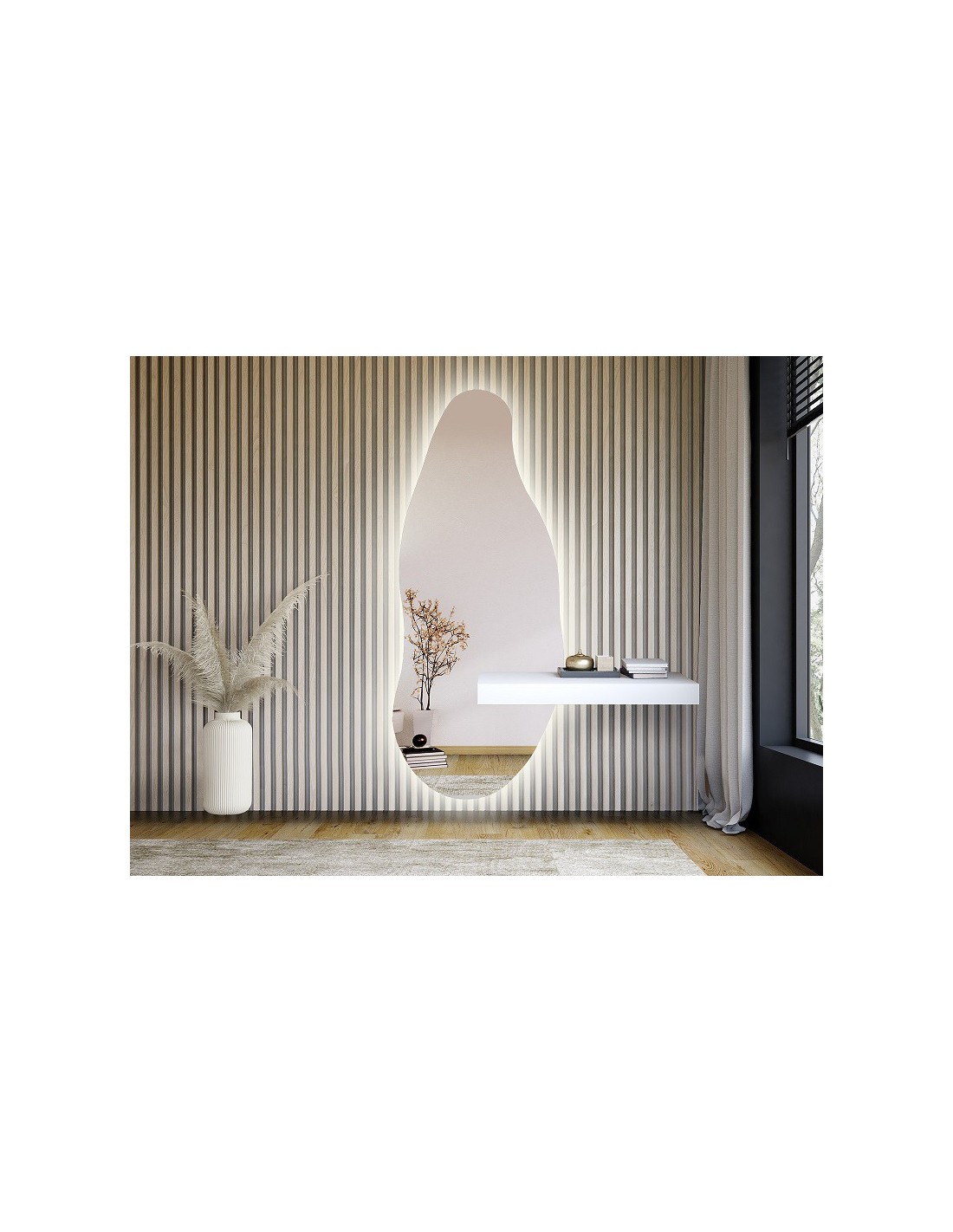Zrkadlo s nepravidelným tvarom s výrezom pre skrinku so svietením - BARYT LED