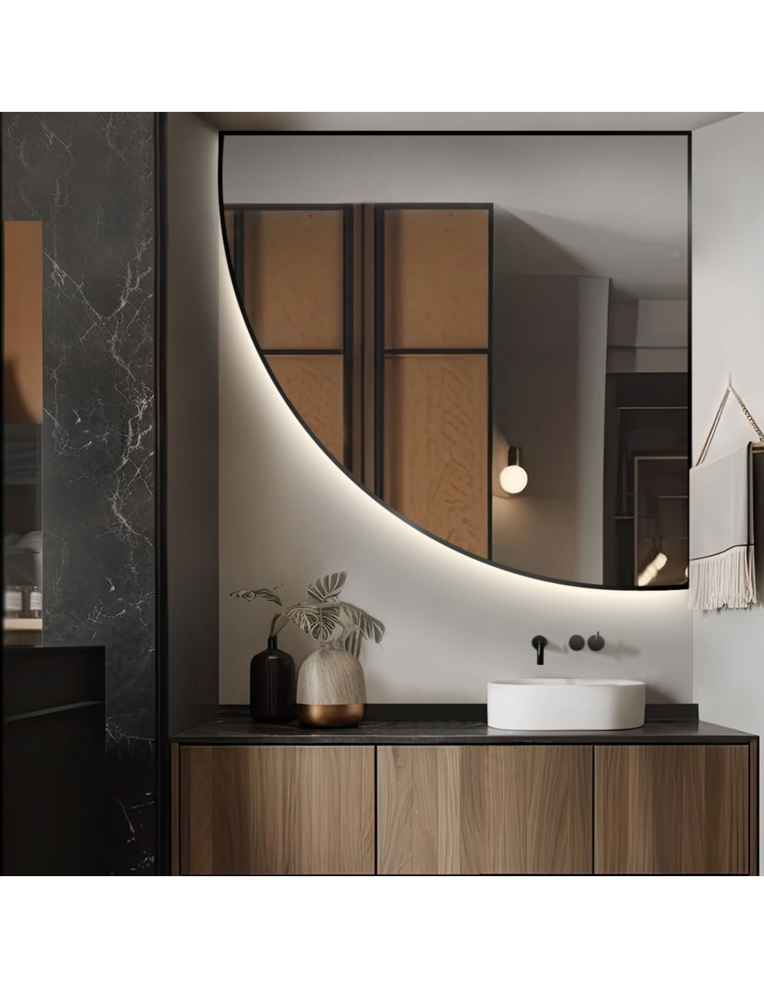 Zrkadlo štvrtkruhu v ráme s osvetlením - ŠTVRTKA V RÁME LED