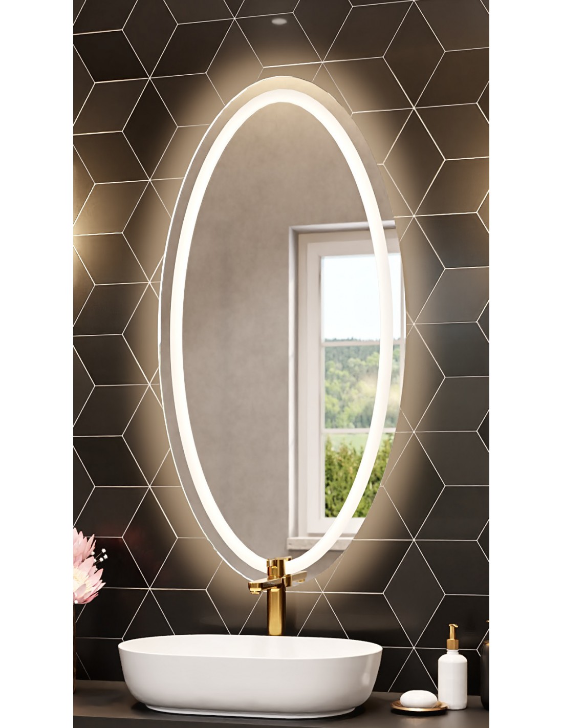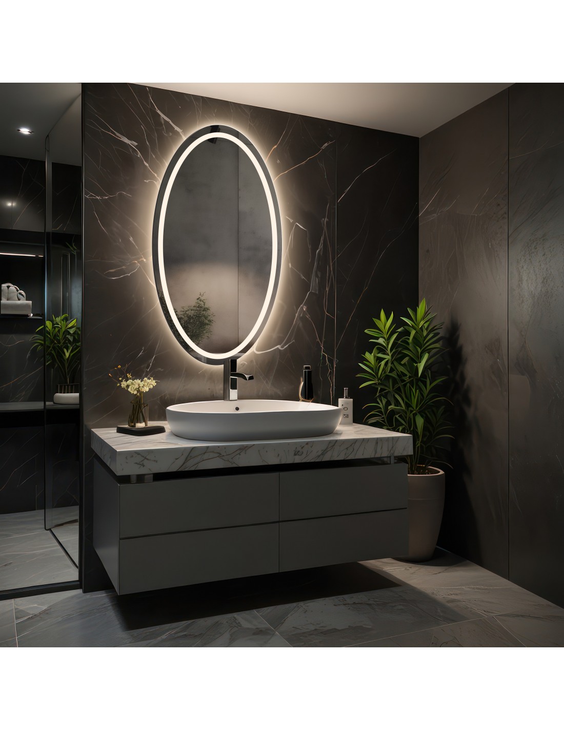Oválne zrkadlo v čiernom MDF SLIM ráme s osvetlením - OLI LED - farba rámu podľa vášho...