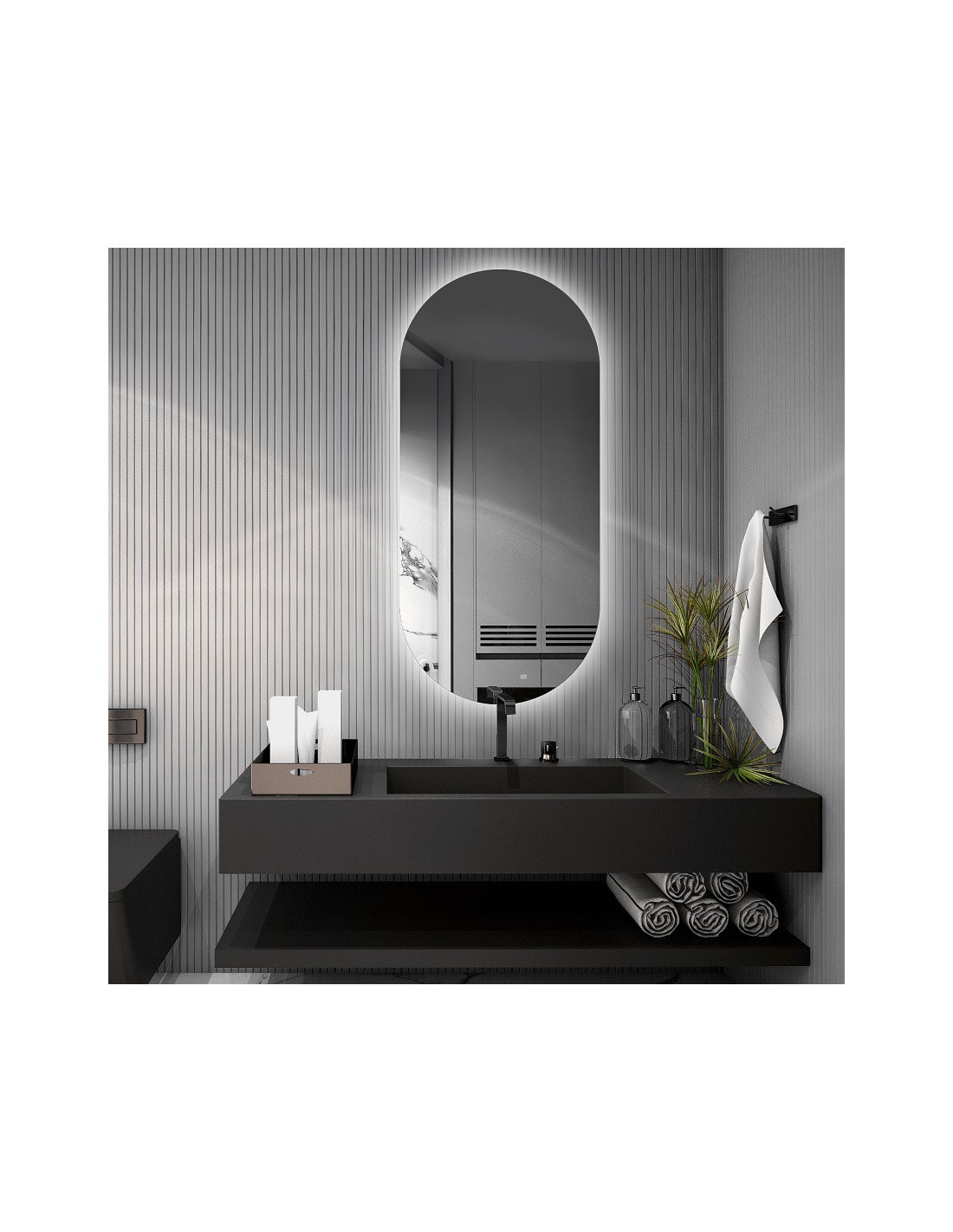 Umožňuje jednoduchú zmenu farby svetla od teplej bielej cez neutrálnu bielu až po studenú bielu. Vyhradený vypínač je súčasťou štandardnej výbavy a nachádza sa v spodnej časti zrkadla.