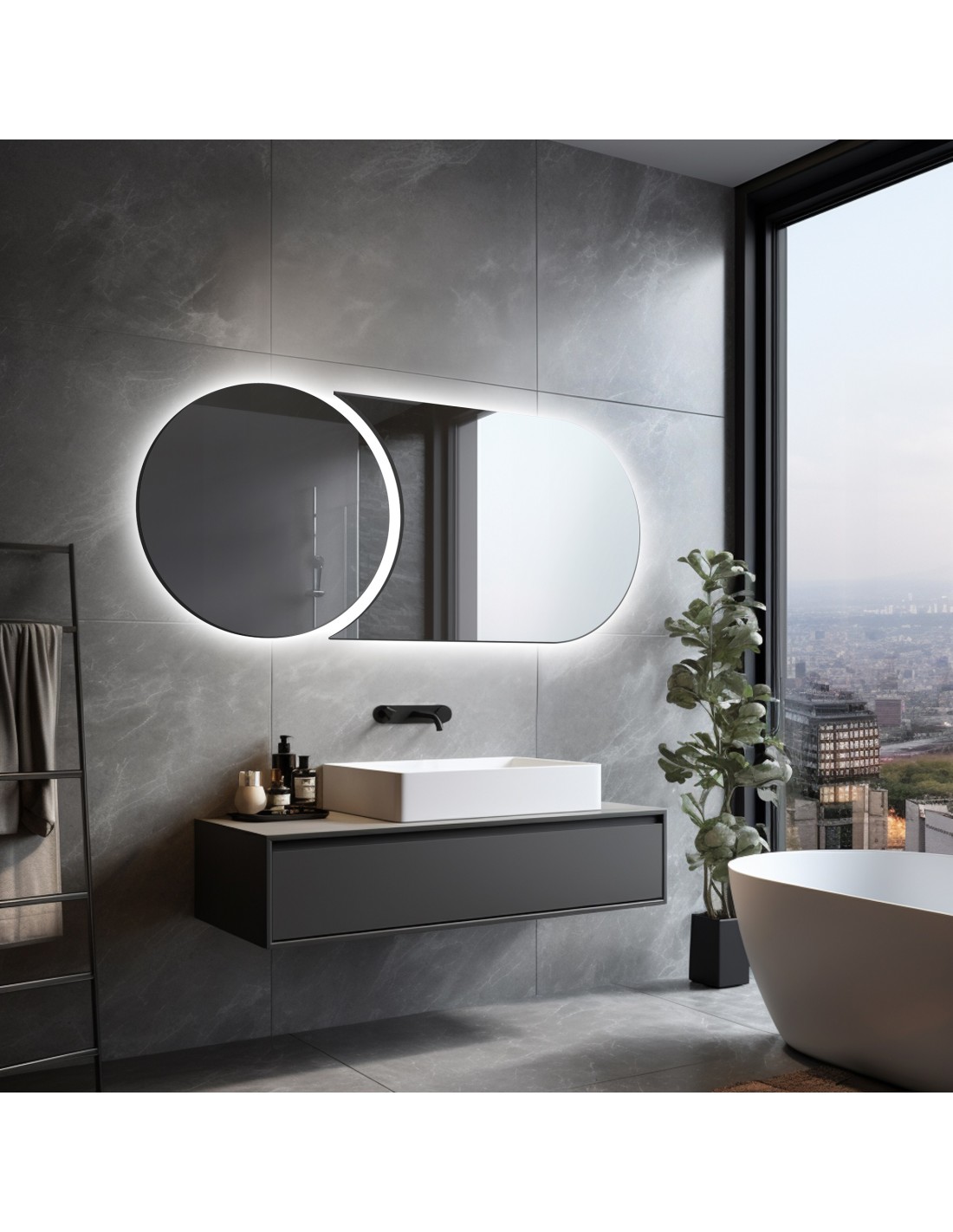 Okrúhle zrkadlo v čiernom MDF SLIM ráme s osvetlením - OTYLIA LED - farba rámu podľa...