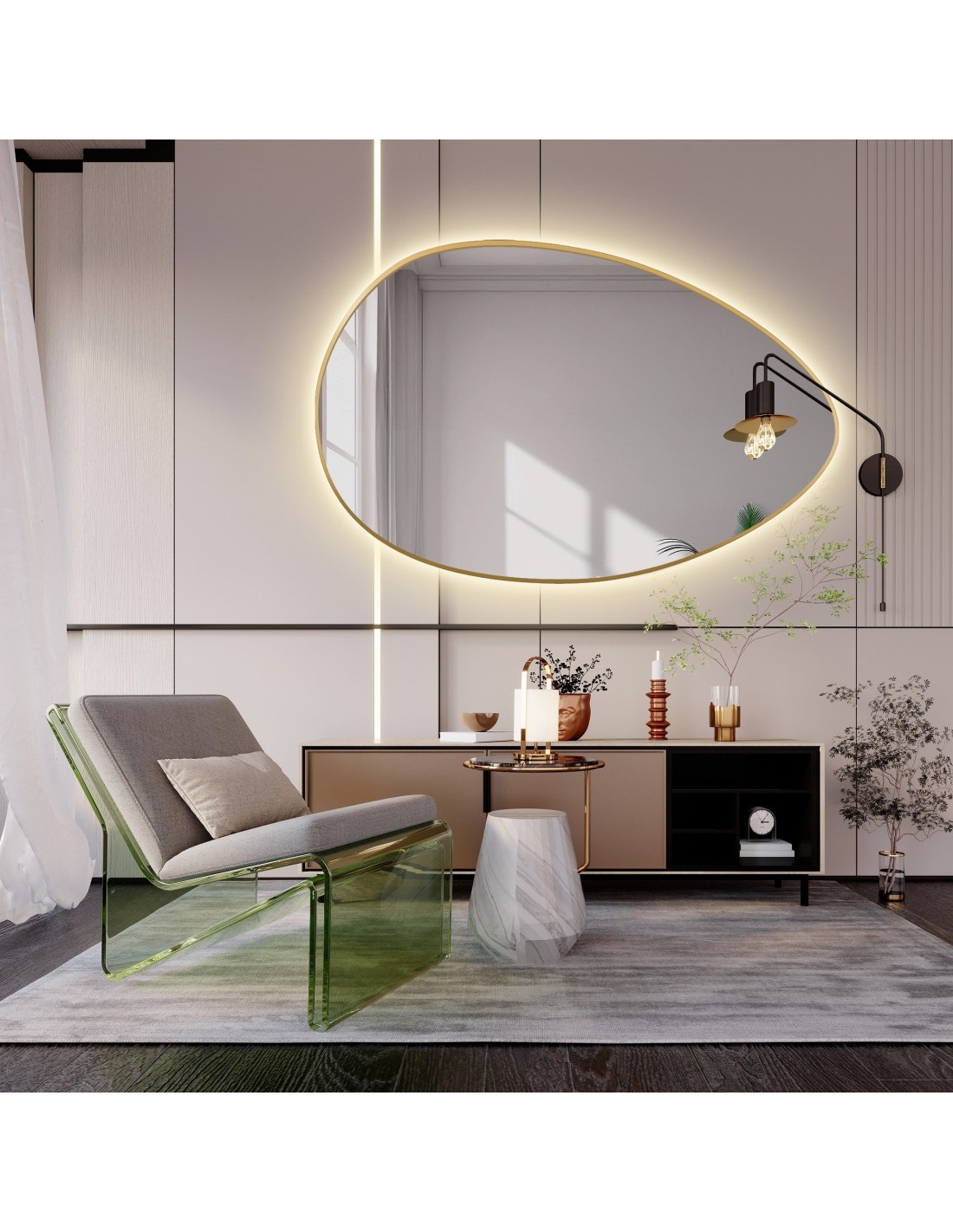 Organické zrkadlo v zlatom MDF SLIM ráme s osvetlením - ZOE LED - farba rámu podľa vášho výberu