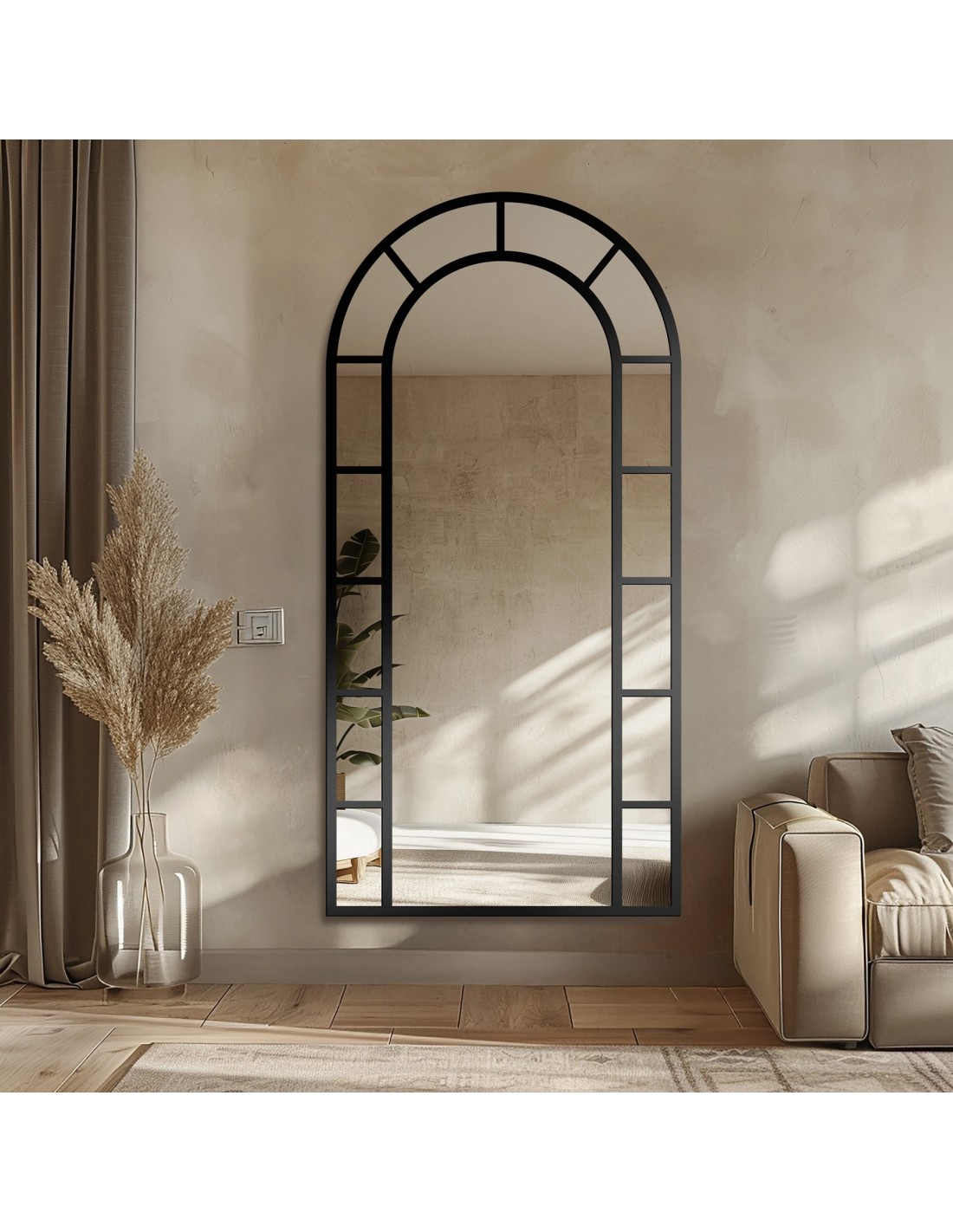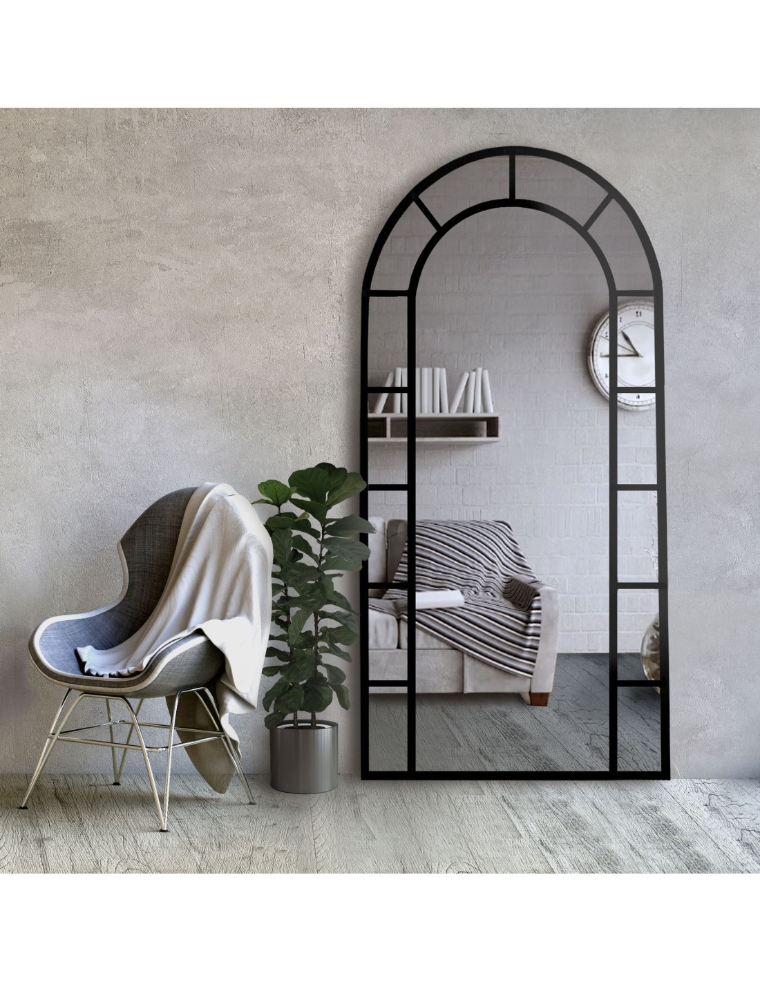 Poloválne zrkadlo s priečkami v loftovom MDF ráme – OKNO III – farba rámu na výber