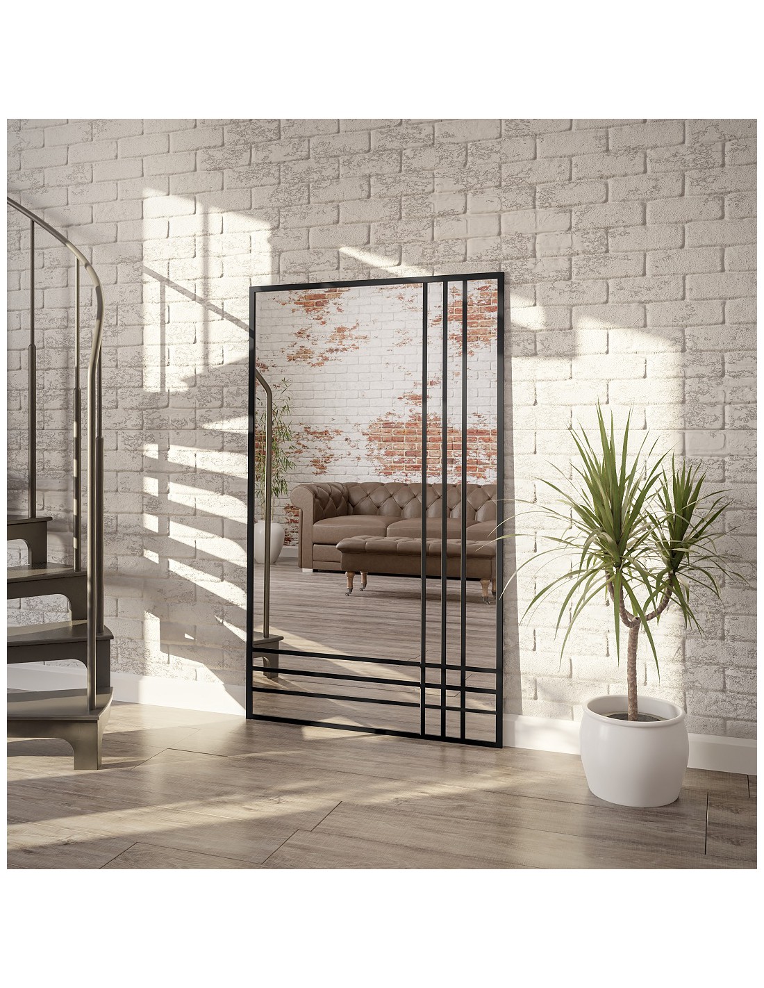 Loftové zrkadlo s priečkami – LUKAS TRIO – farba rámu na výber