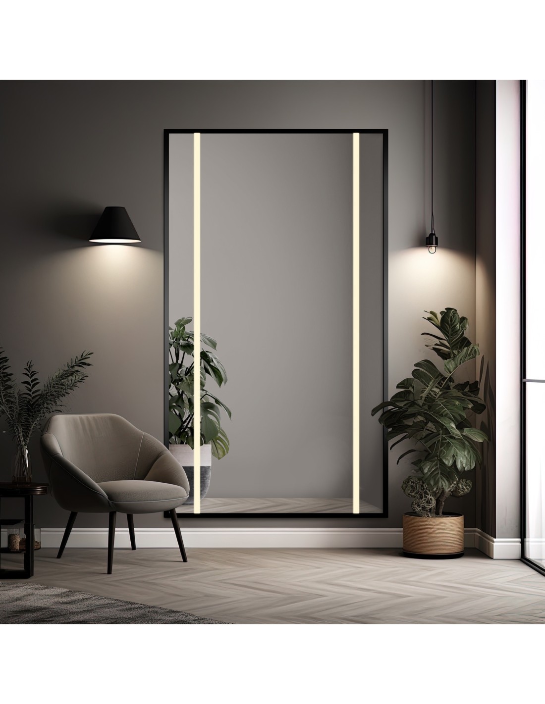 Základná možnosť, pri ktorej zrkadlo vyžaduje pripojenie k sieti 230 V. Pred montážou je potrebné zabezpečiť estetické a bezpečné pripojenie. Upozornenie: Zrkadlo pripojené priamo k sieti 230 V funguje iba s nástenným vypínačom. Ak taký vypínač nemáte, vyberte si prosím inú možnosť ovládania.