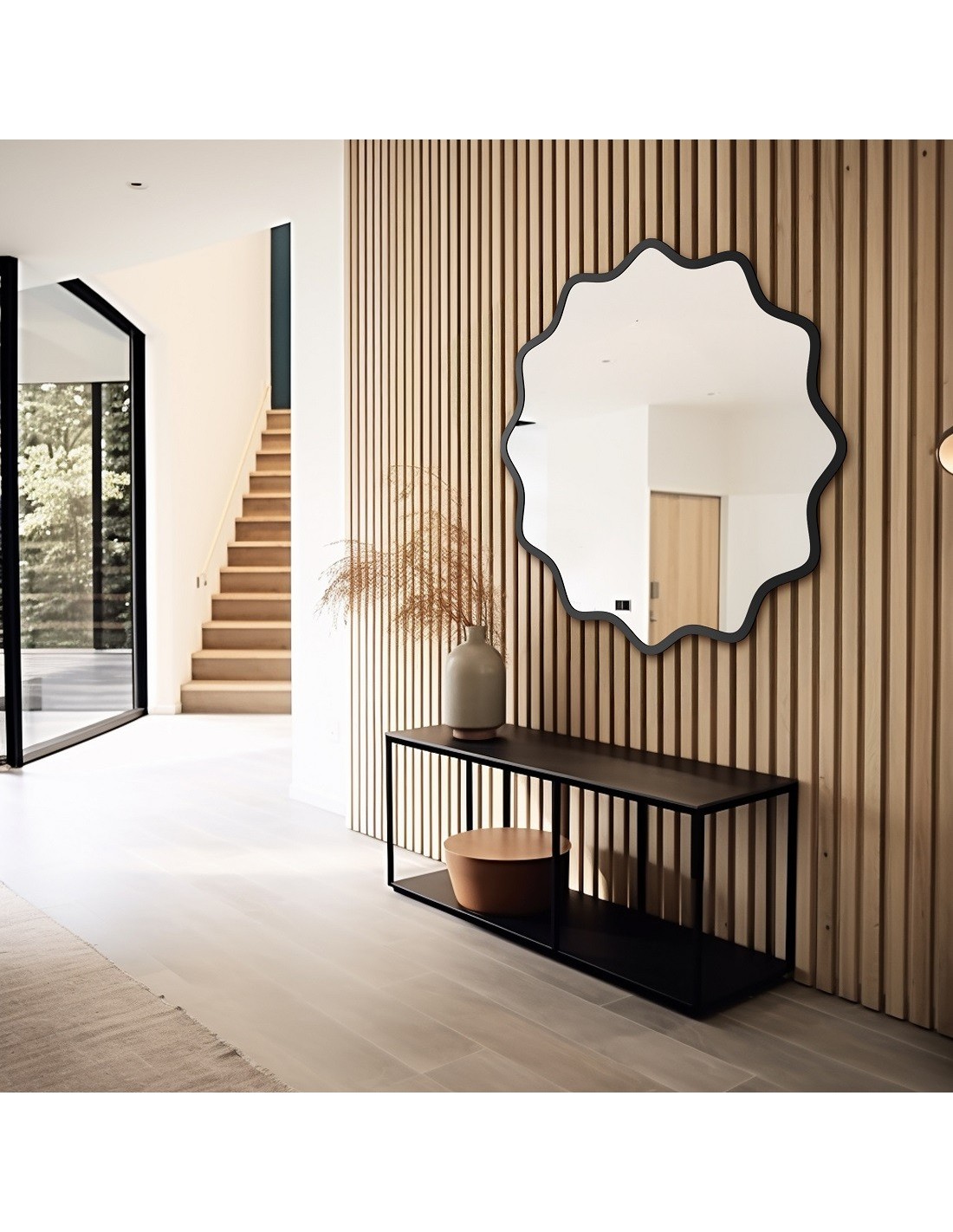 Okrúhle zrkadlo vo zvlnenom MDF ráme...