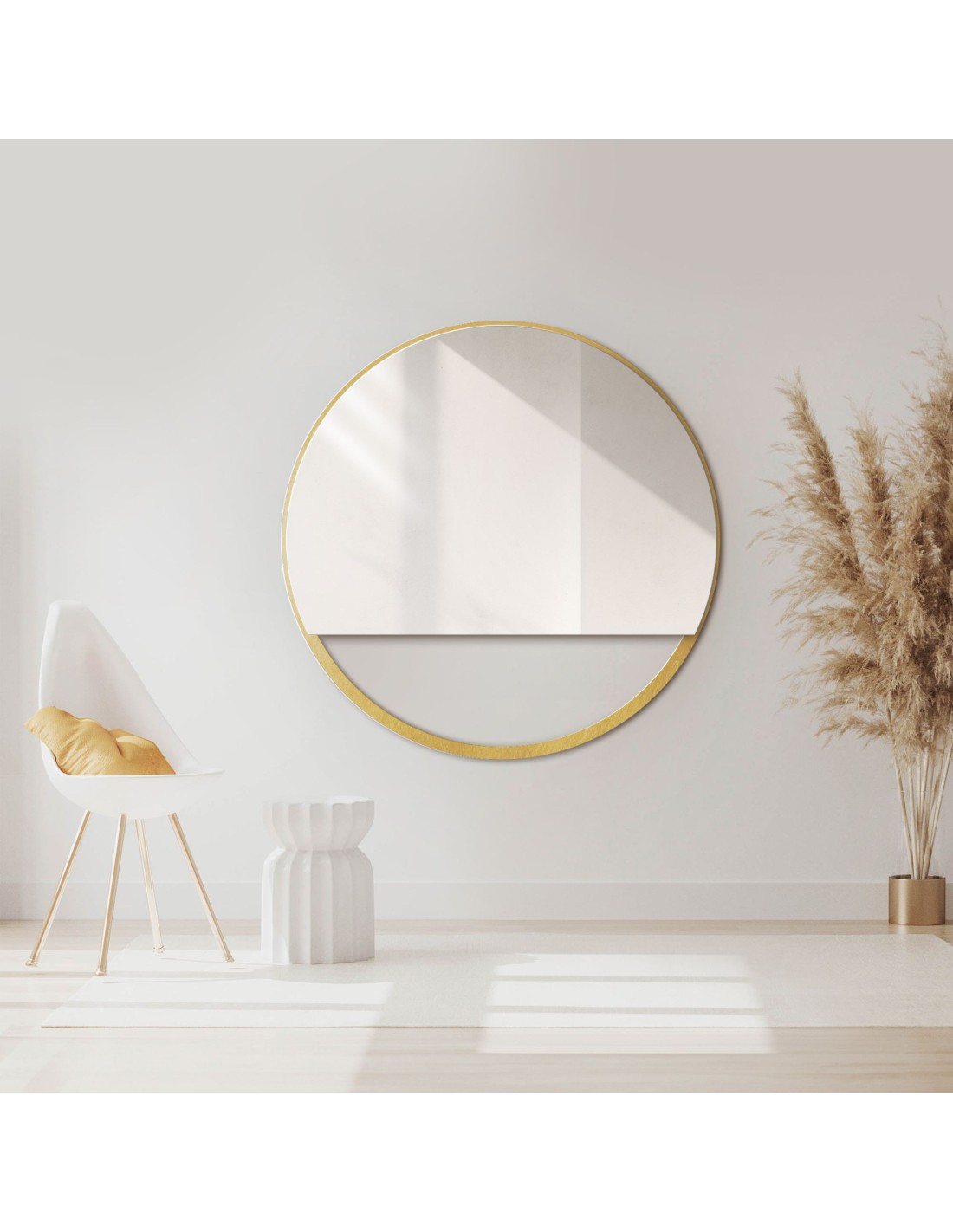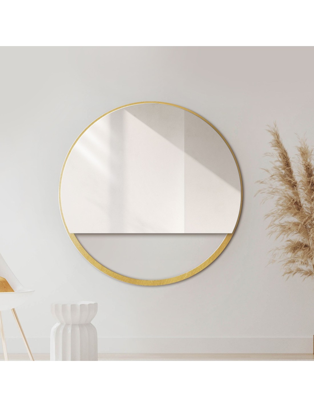 Okrúhle zrkadlo v zlatom MDF ráme SLIM s voľným priestorom - OLENA