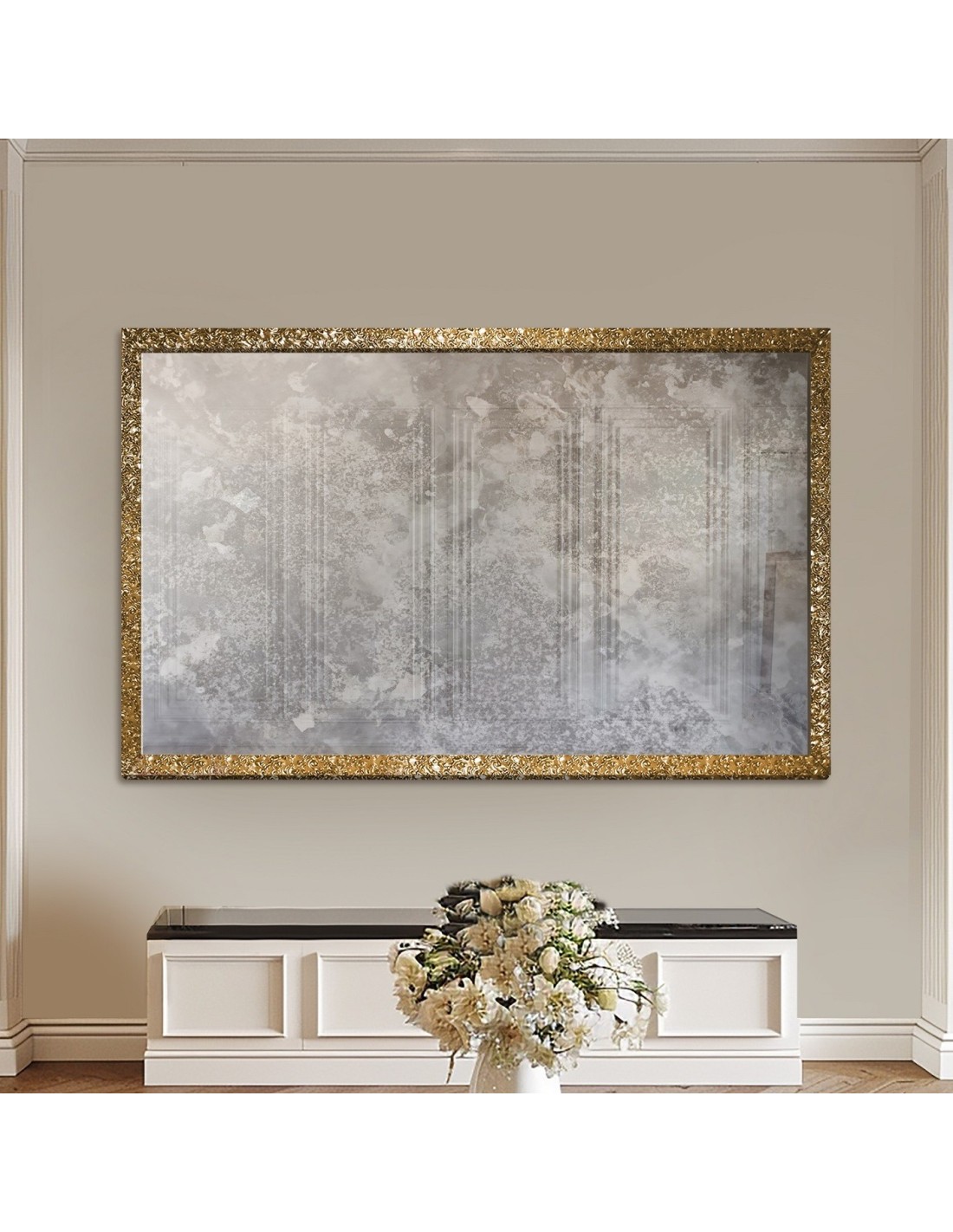 Luxusné nástenné zrkadlo so zlatým rámom a postaršenou zrkadlovou plochou – 8002002 – JULIA SILVER