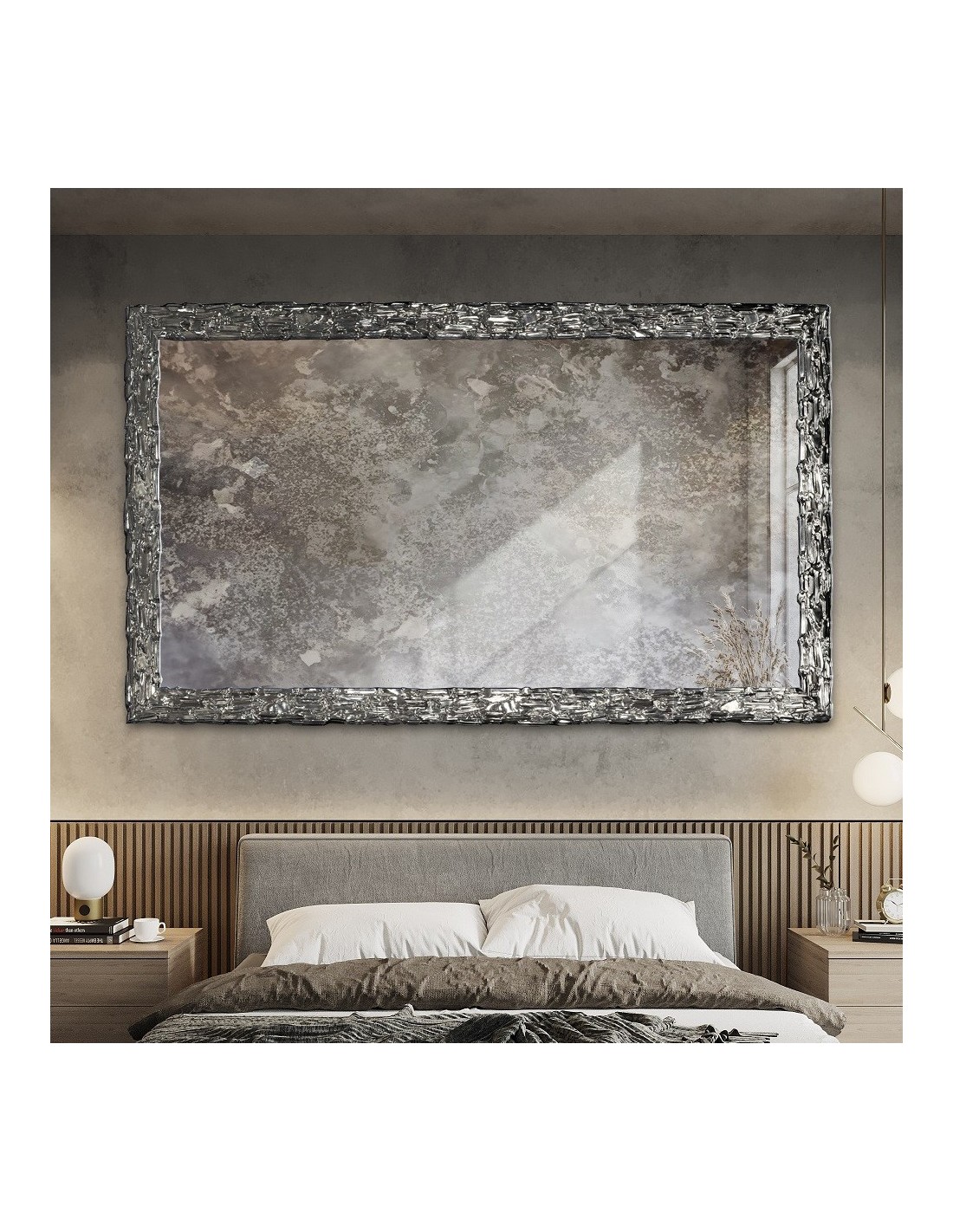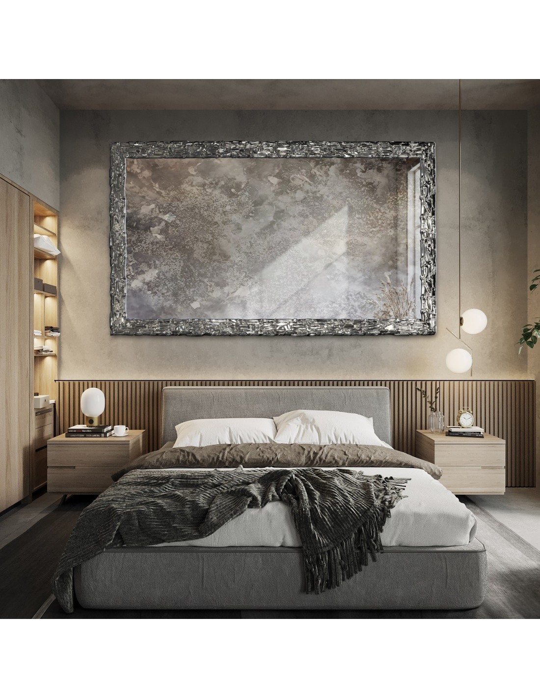 Elegantné nástenné zrkadlo v striebornom ráme s postaršenou zrkadlovou plochou – CLAUDE SILVER