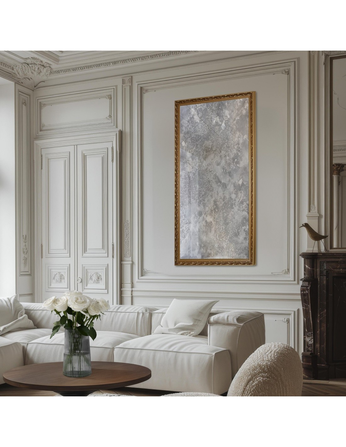 Luxusné nástenné zrkadlo v ornamentálnom ráme s postaršenou zrkadlovou plochou – GUSTAV SILVER