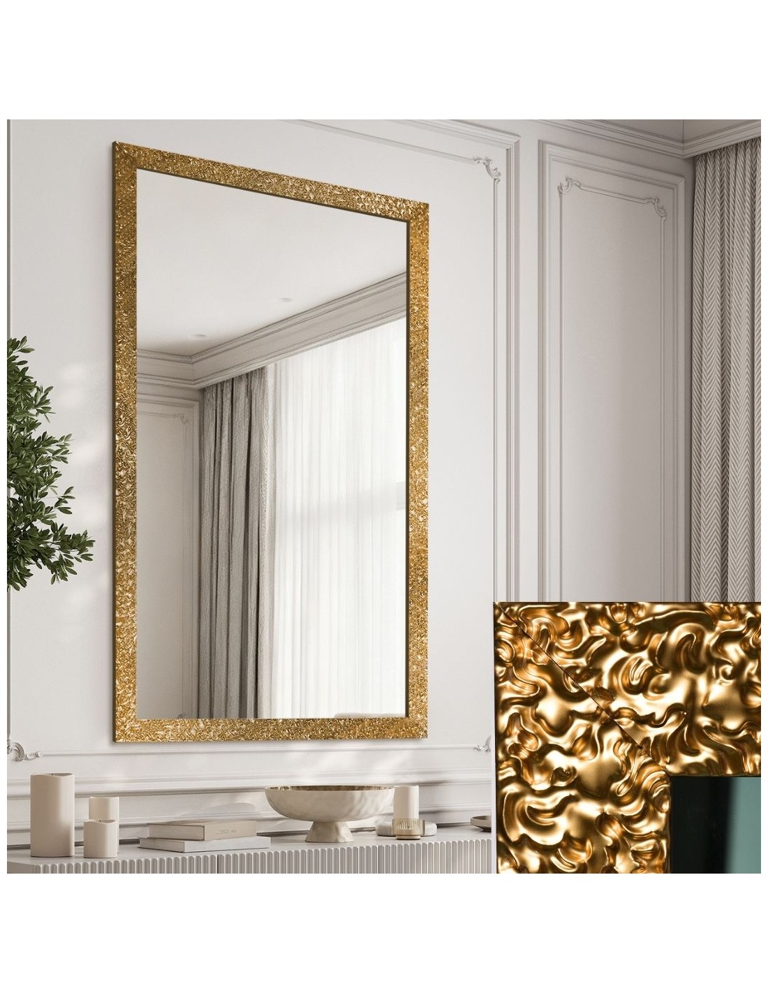 Zrkadlo Glamour v bohatom zlatom ráme s vysokým leskom - 8002002
